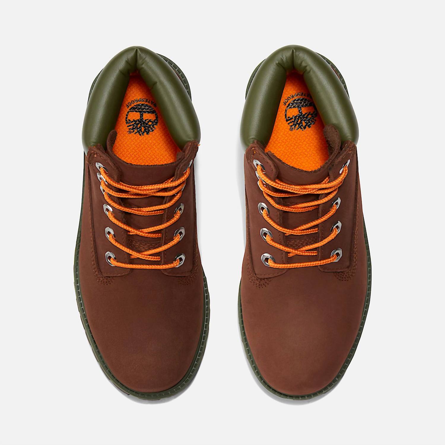 Say hello to the perfect, most versatile boot. The ankle height makes this style easily transition from day to night. Wear them with your favorite skinny jeans and tee for a more laid back look, or pair them with your favorite mini dress and jacket for a night out on the town. Introducing the Women's Premium Nubuck 6-inch Waterproof Boots by Timberland, a must-have for enduring style and comfort. These dark brown ankle boots feature a padded collar for a snug fit around the ankle and a round toe shape. Made from durable leather and featuring a seam-sealed construction, they ensure waterproof protection. With a ReBOTL™ fabric lining containing at least 50% recycled plastic, an EVA-blend foam footbed for cushioning, and a steel shank for arch support, these boots provide both eco-consciousness and support. The rubber lug outsole offers superior traction, making them a reliable choice for any adventure.