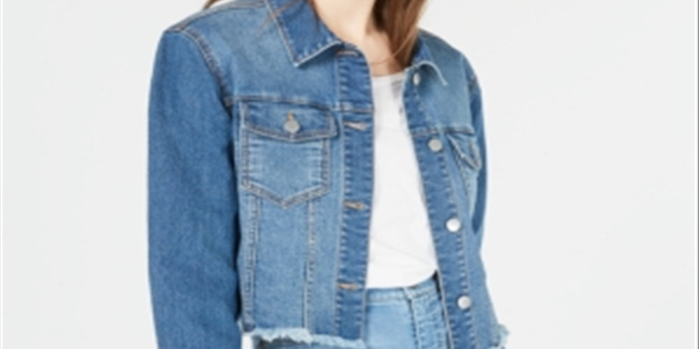Tinseltown Junior's Cropped Raw Edged Denim Jacket Blue Size X-Small