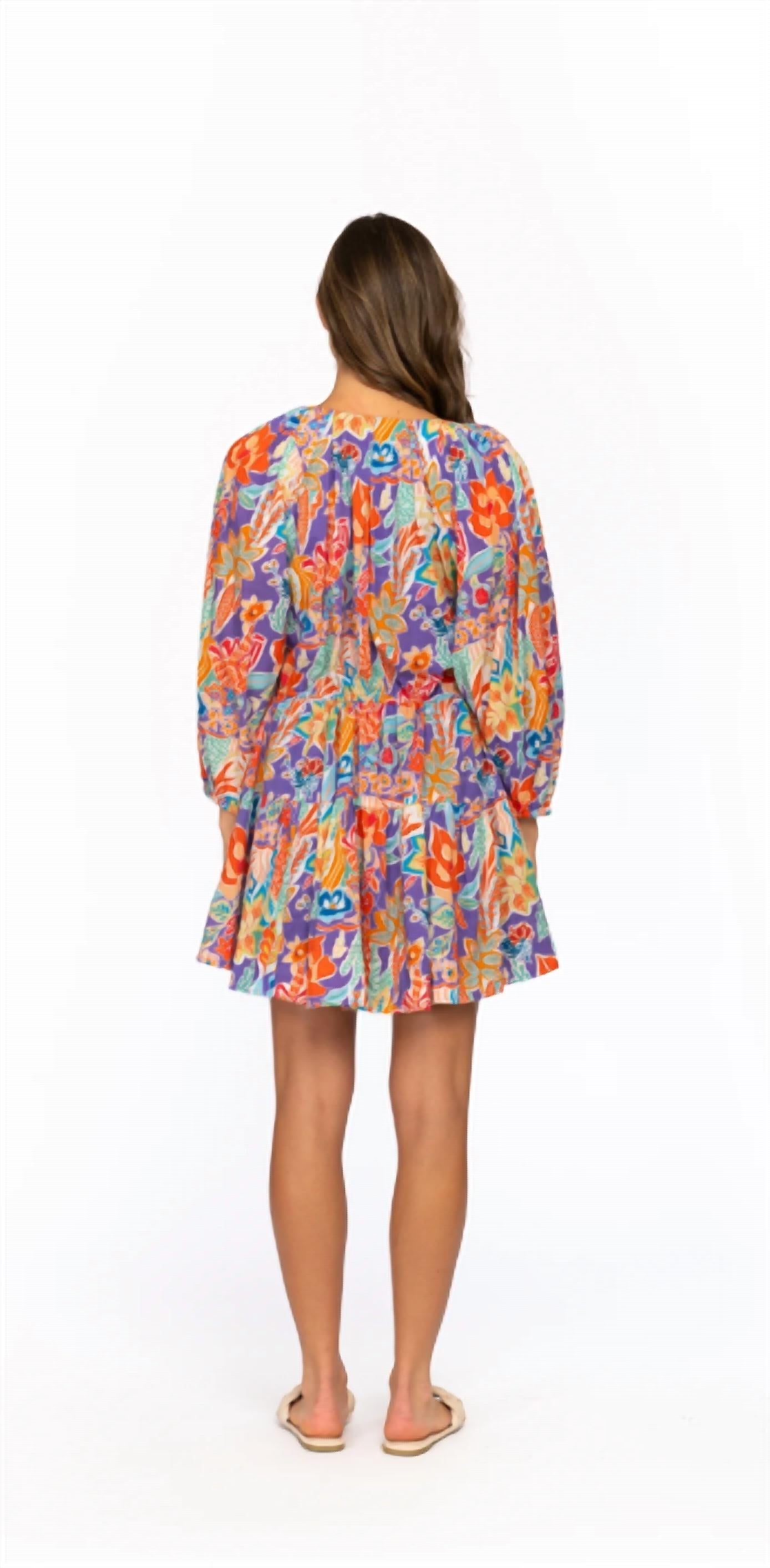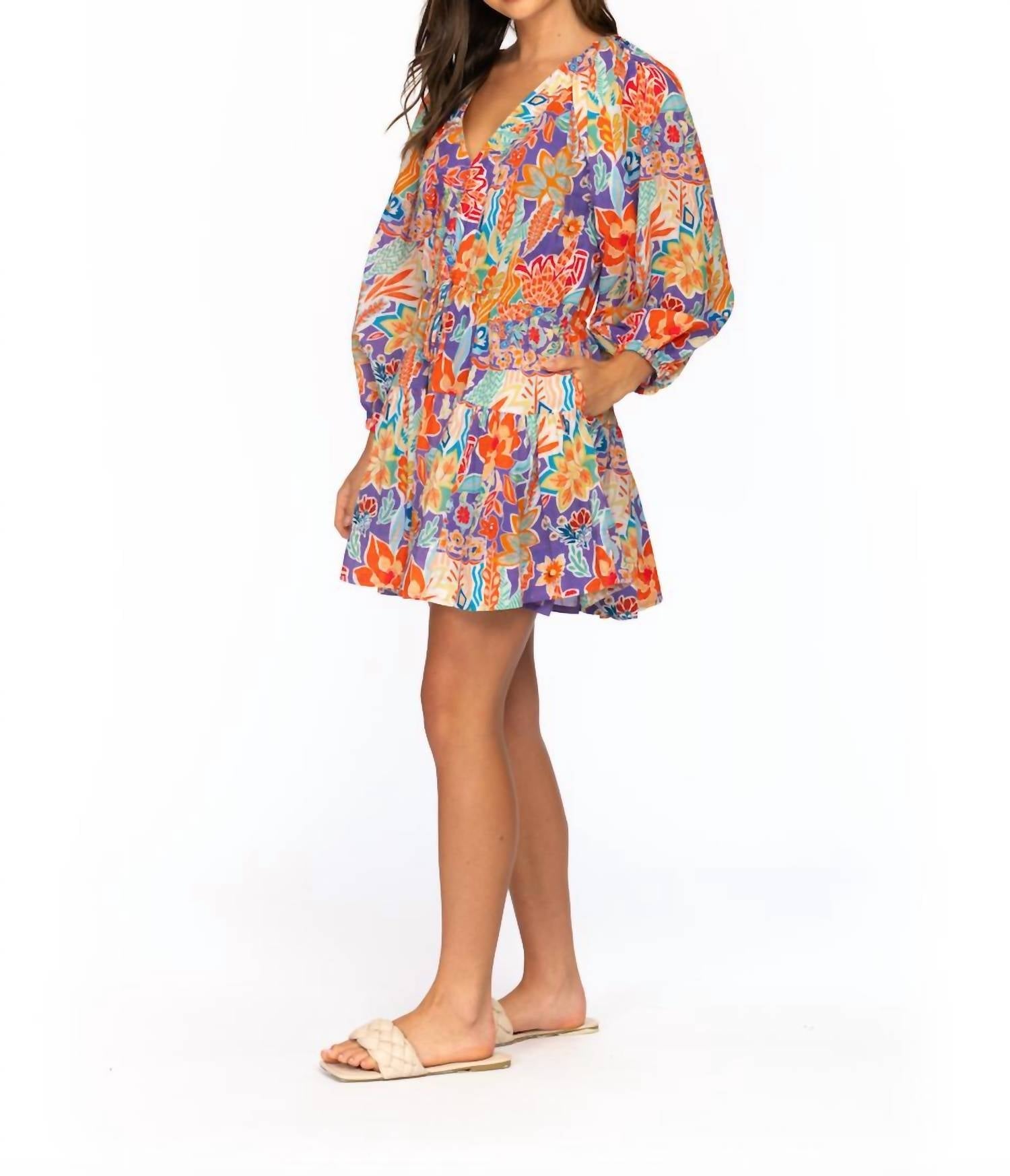 The perfect mini dress for those warmer months. Introducing the Tolani Vica Bermuda Dress, an elegant fusion of style and comfort with three-quarter sleeves and tiered ruffles, perfect for any occasion. Made from 100% cotton and featuring a flattering v-neckline, this dress embodies the spirit of boho chic with its feminine, floral design. Proudly crafted in India, it combines timeless elegance with modern functionality, complete with convenient pockets. Closure: Pull-on. To maintain its quality, machine wash cold on a gentle cycle or dry clean.