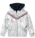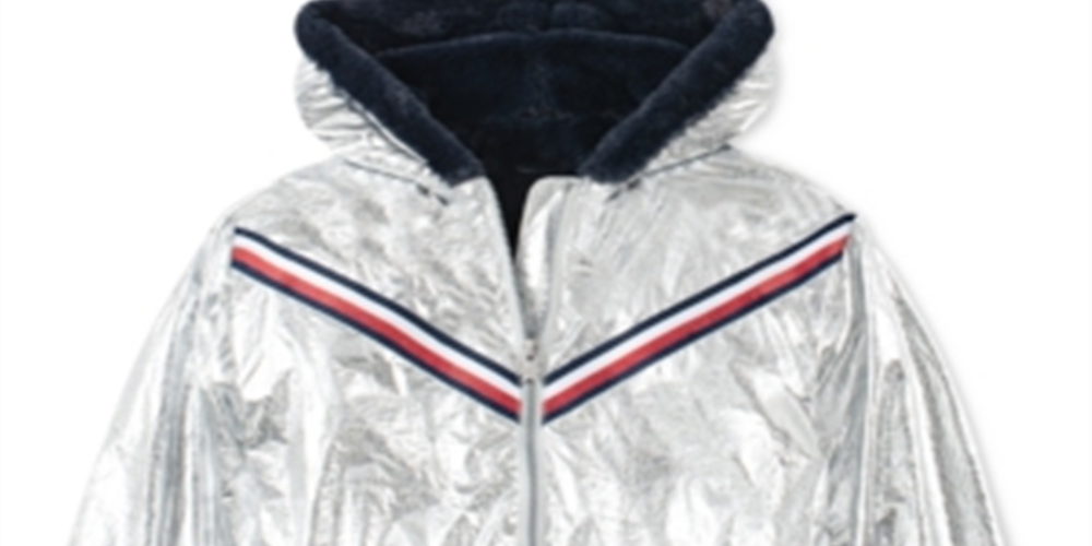 Tommy Hilfiger Big Girl's Hooded Metallic with Faux Fur Trim Jacket Silver Size 12-14