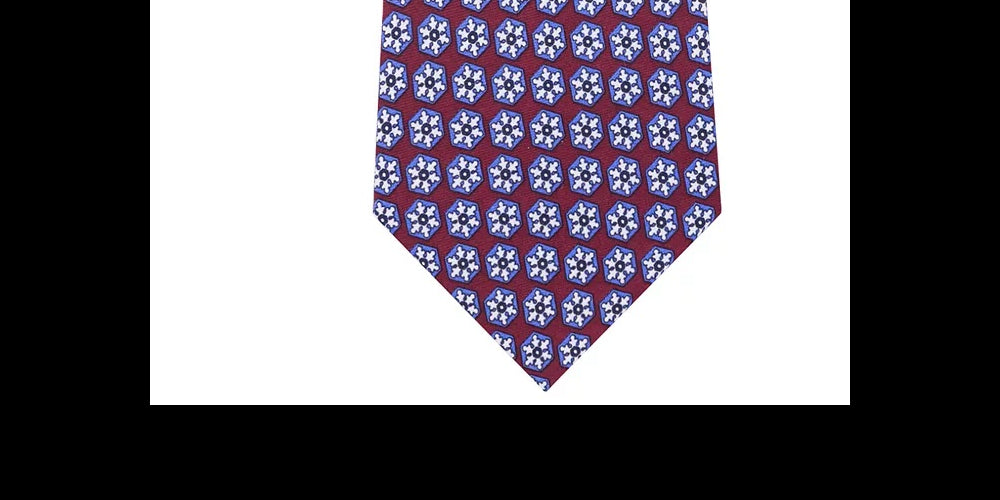 Classic design|3-1/8" wide|Snowflake neat pattern|All silk|Dry clean|Imported