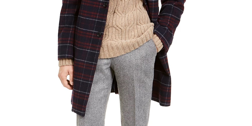 Tommy Hilfiger Men's Modern-Fit Performance Stretch Flex Plaid Addison Overcoat Red Size 40 R/M37.5