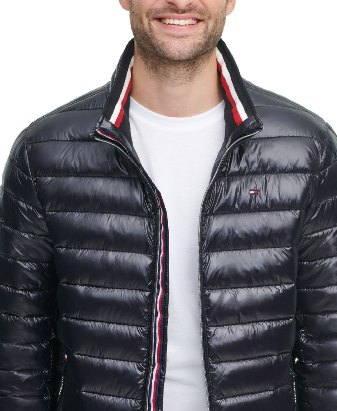 Fashion and function| this Tommy Hilfiger quilted hi-shine packable will keep you warm| but is still light enough to take with you on any journey| featuring all of the awesome trim detail you've come to love from our Tommy Hilfiger brand.| Two lower pockets with zipper closure| Tommy Hilfiger flag detail on chest| Imported