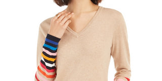 Tommy Hilfiger Women's Cotton Striped Sweater Brown Size X-Large