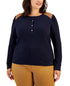 Tommy Hilfiger Women's Faux Suede Yoke Henley Top Blue Size 1X