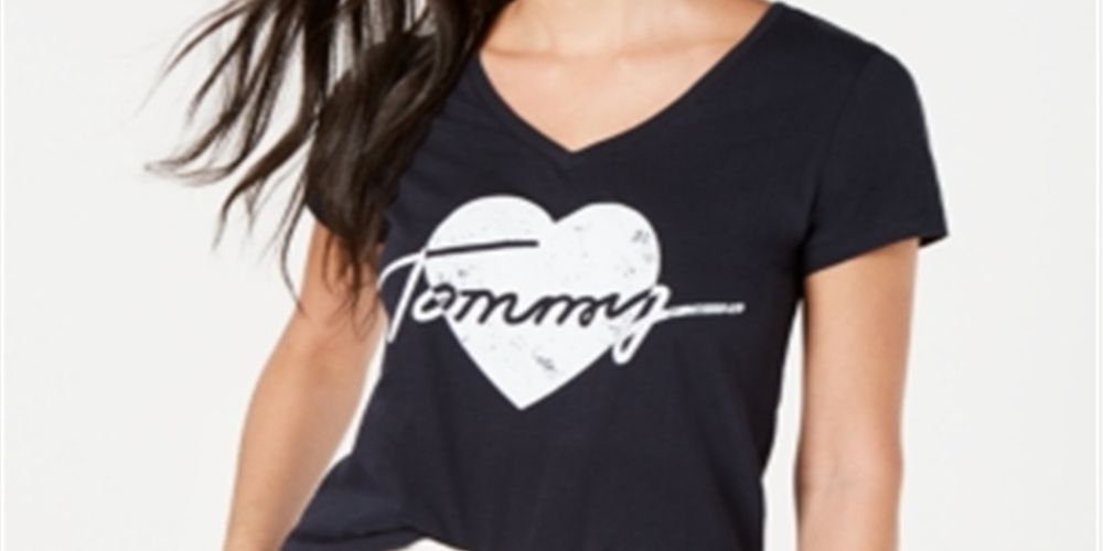 Tommy Hilfiger Women's Heart-Logo Graphic T-Shirt Sky Captain Size Large