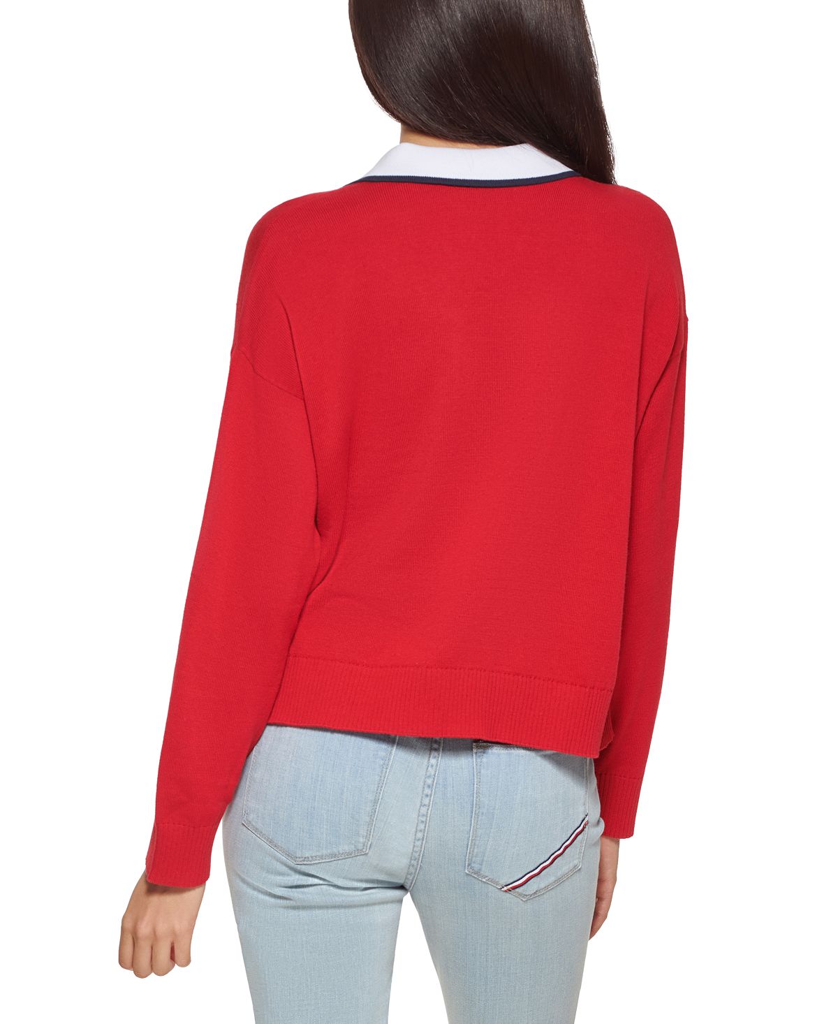 Tommy Hilfiger Women's Johnny Collar Sweater Red Size Medium
