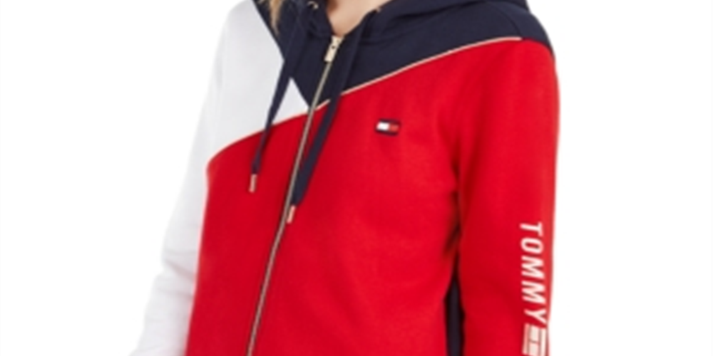 Tommy Hilfiger Women's Sport Colorblocked Zip up Hooded Sweatshirt Red Size Medium