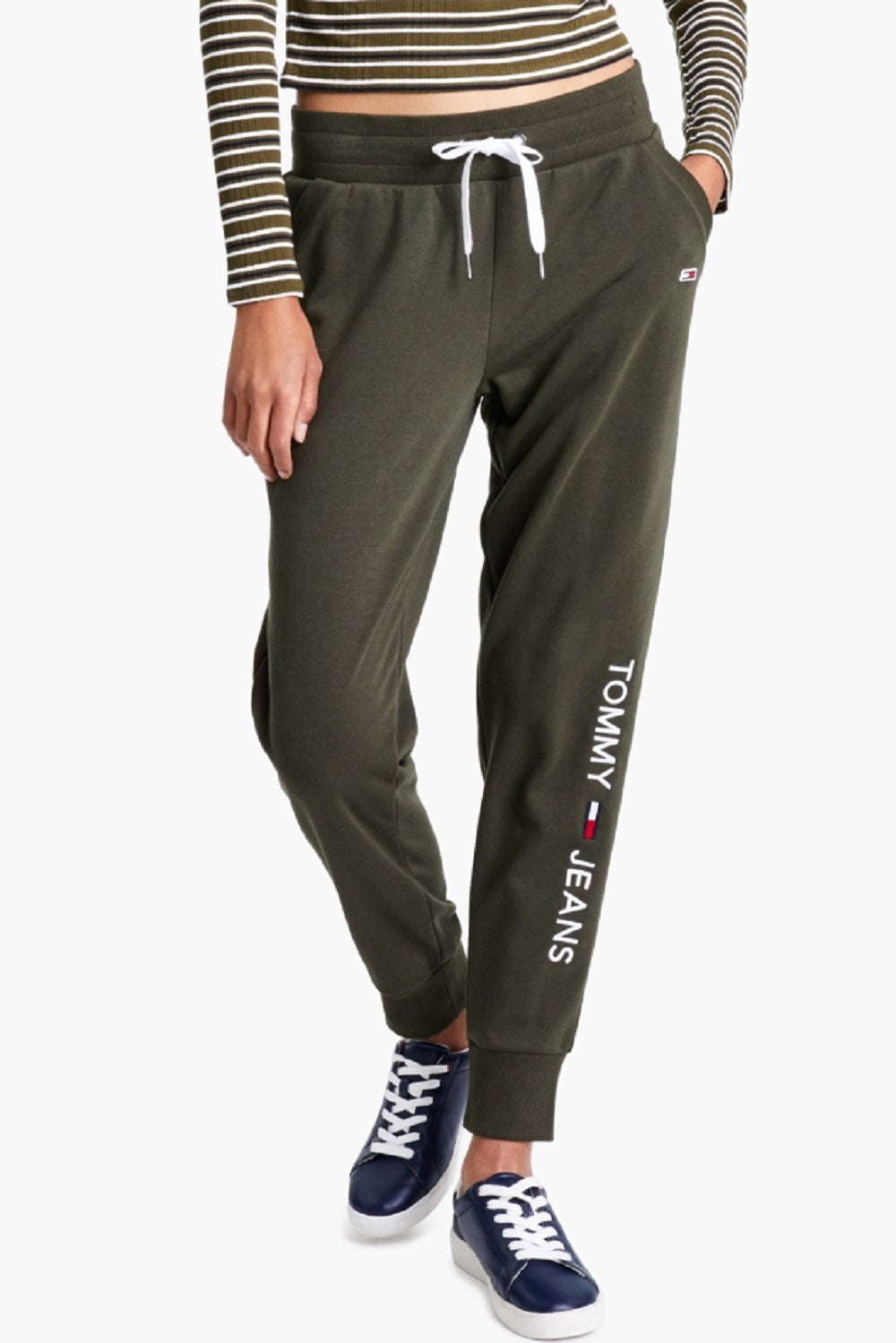 Tommy Jeans' lounge-worthy jogger pants feature a comfy pull-on waistband and an embroidered logo down the leg.| Approx. inseam; 28-1/2| Rise; approx. 10-3/4; leg opening; 5-1/2| Pull-on styling; drawstring waistband| Embroidered logo at left leg| Two pockets at front