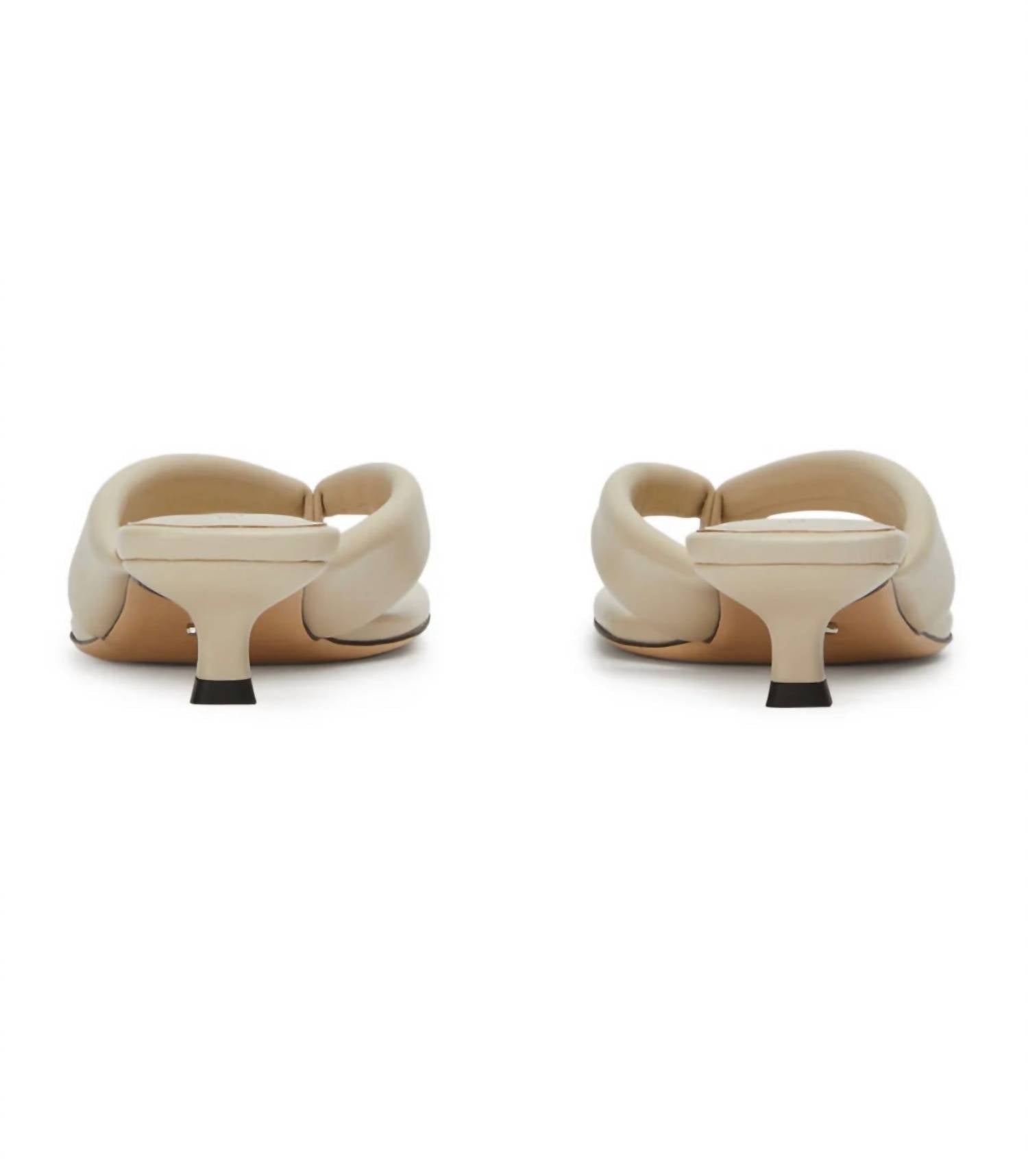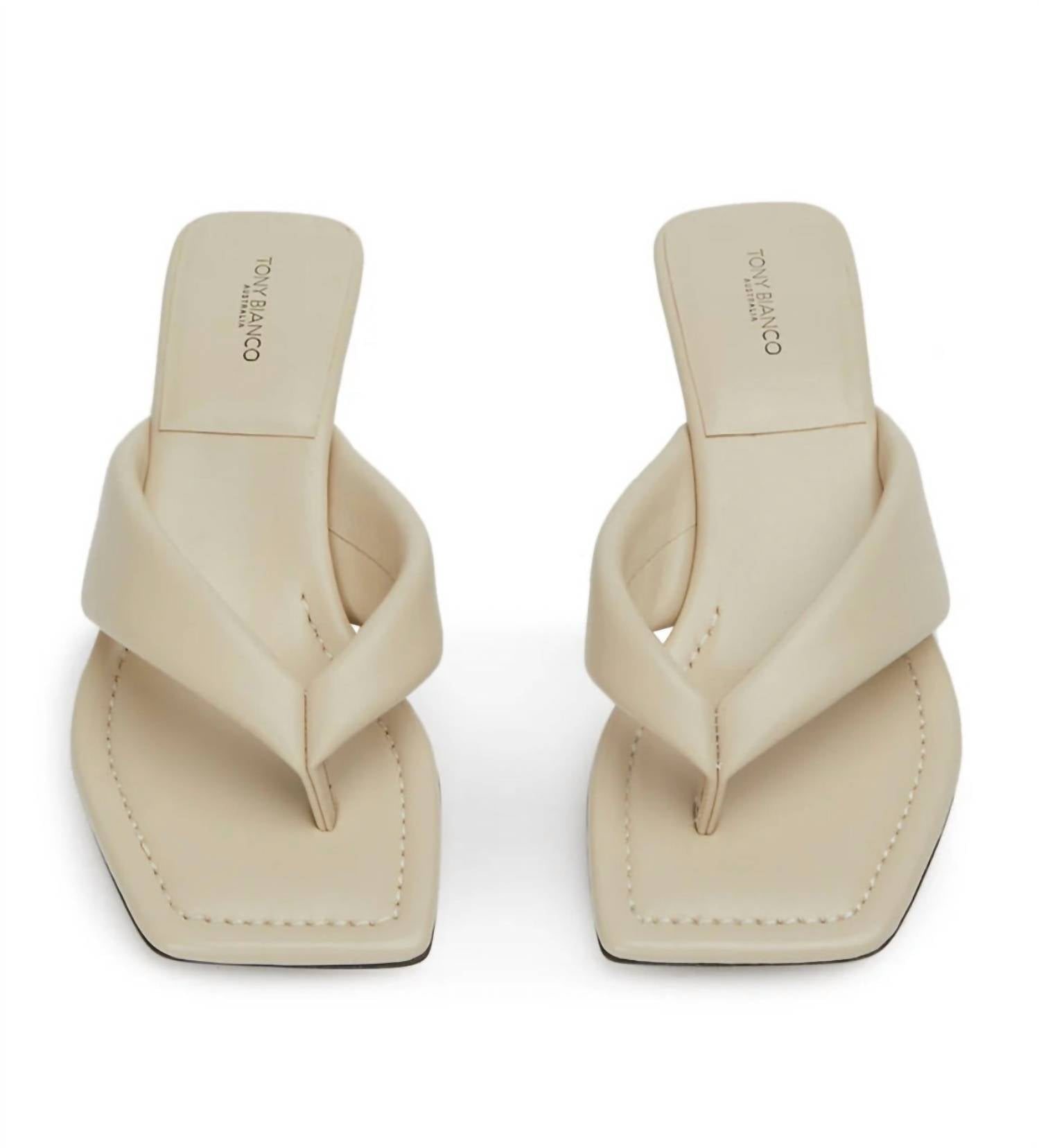 Step into elegant sophistication with the Women's Tropic Heel Sandals by Tony Bianco, an embodiment of quiet luxury. These medium-width sandals are crafted from sumptuous Vanilla Nappa Leather and feature an open toe design with a chic 1.37-inch kitten heel for a comfortable yet stylish lift. The slip-on style ensures easy elegance, making them perfect for a spring dinner party or a Thanksgiving celebration. With a rubber sole and a true-to-size fit, these sandals are as practical as they are fashionable.