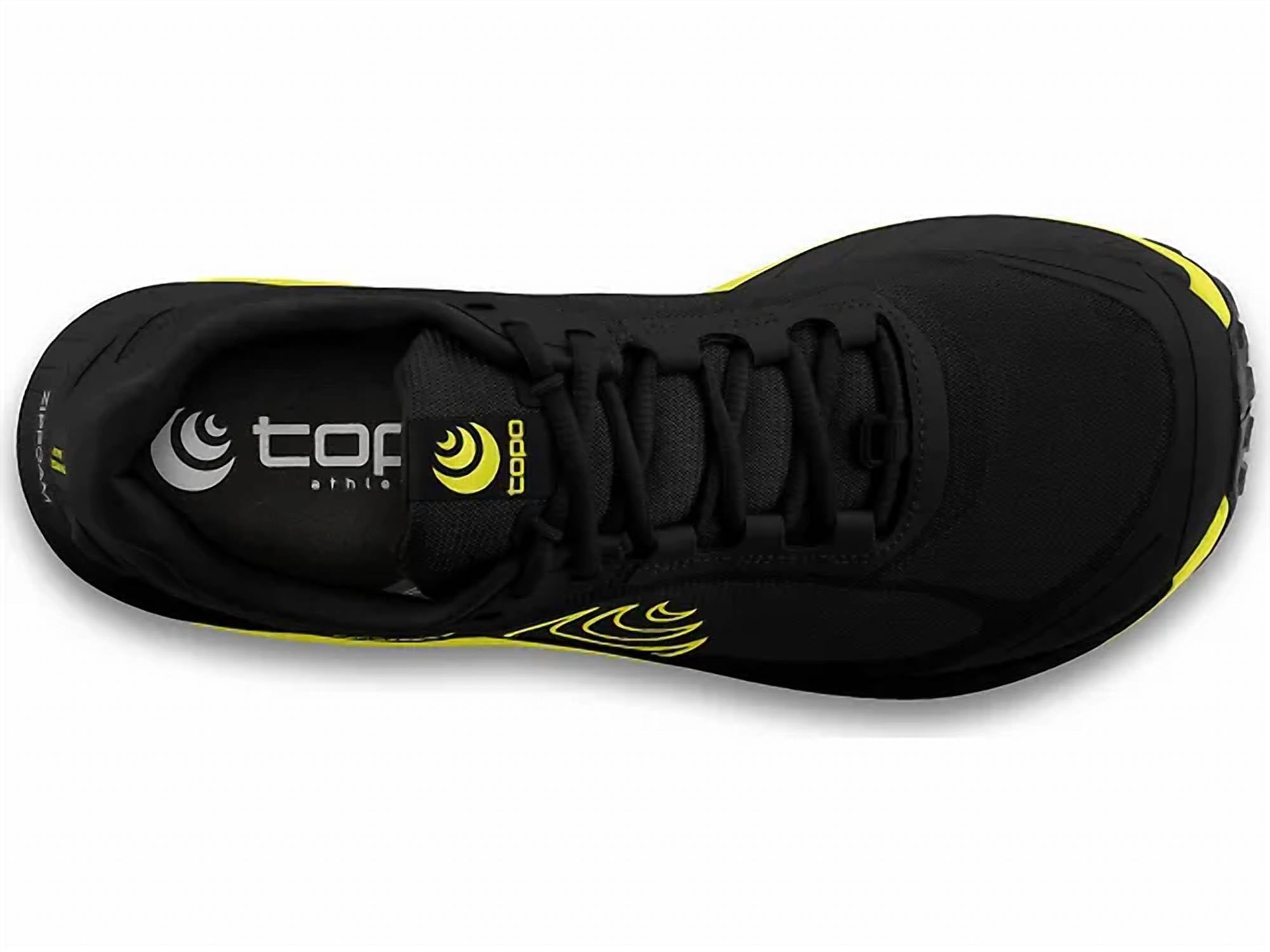 The Men's Mtn Racer 3 Running Shoes by Topo Athletic are a perfect blend of style and functionality, crafted for the active man. These shoes feature a flat, chunky heel for stability, ideal for hiking and athleisure activities. They come in a striking Black/Lime color, offering a round toe design for comfort. Enjoy these versatile shoes throughout the summer season.