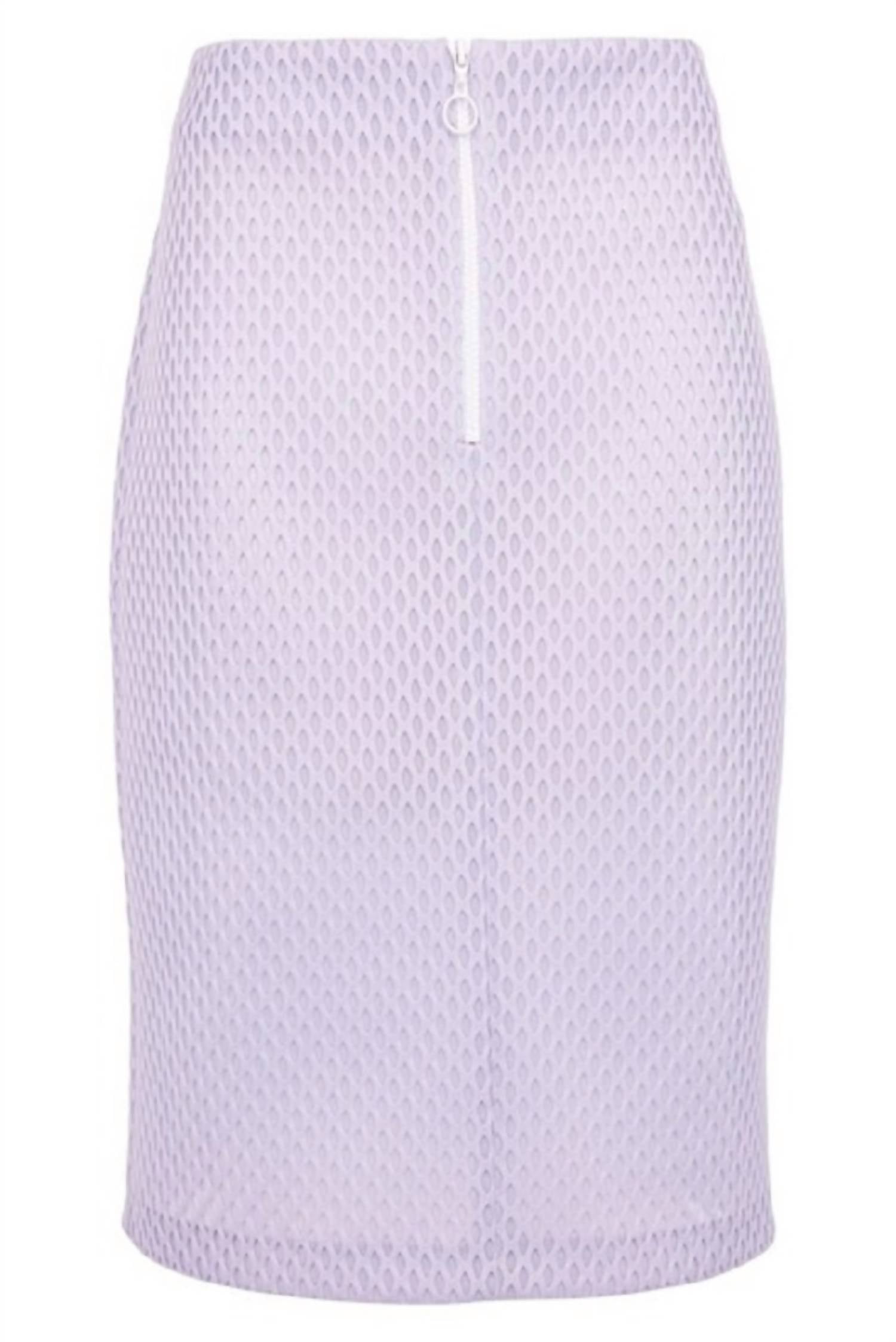 This pencil skirt is suprisingly comfortable and hugs in all the right places. Thick diamond-pattern mesh makes a sporty statement on an office-savvy pencil skirt Front zip closure Back vent Lined 100% Polyester Machine wash, line dry Waist 14" Length 24.75