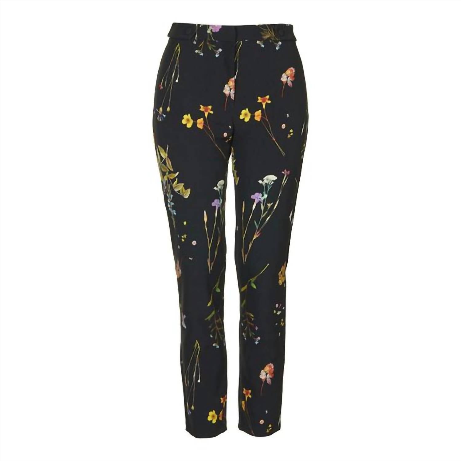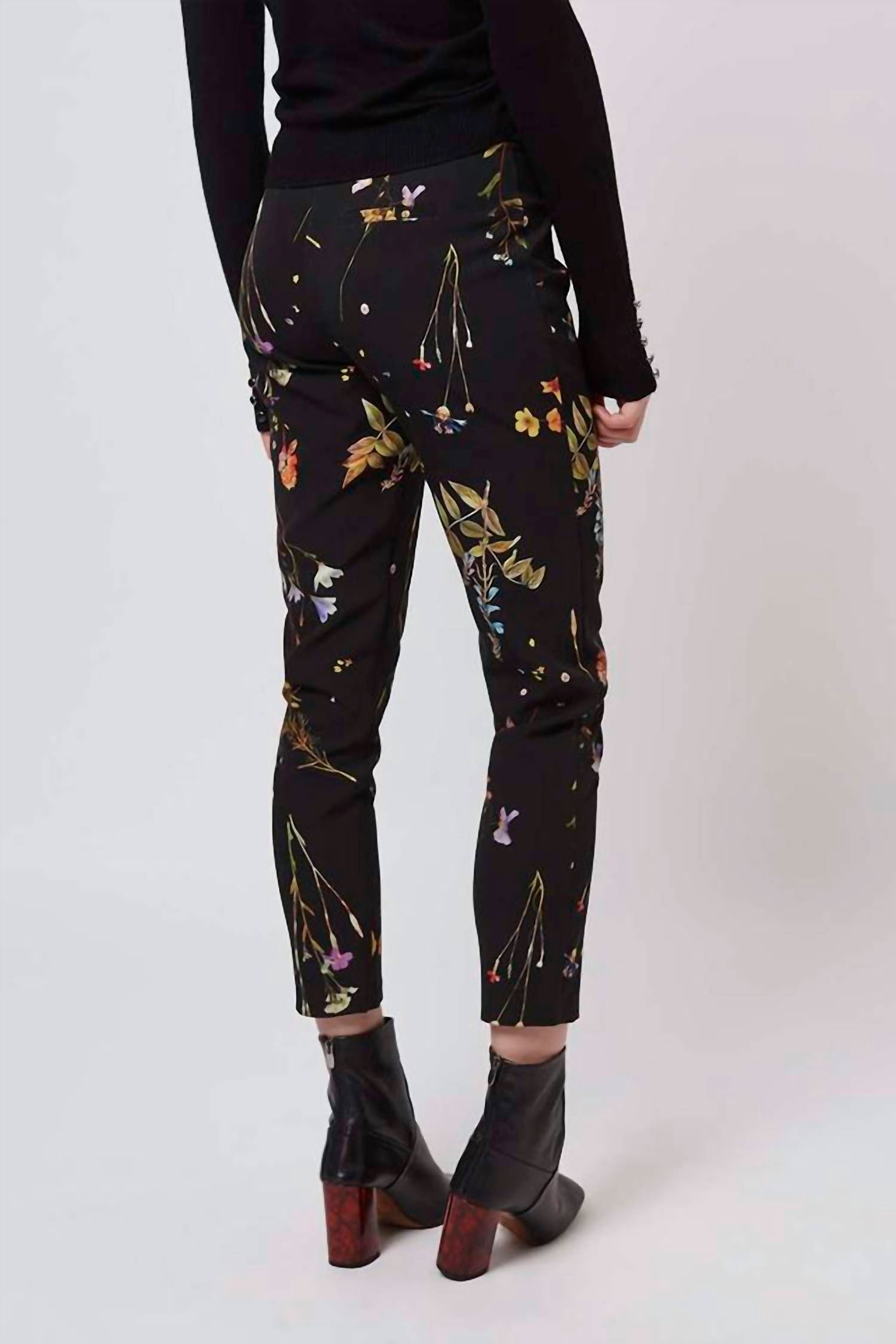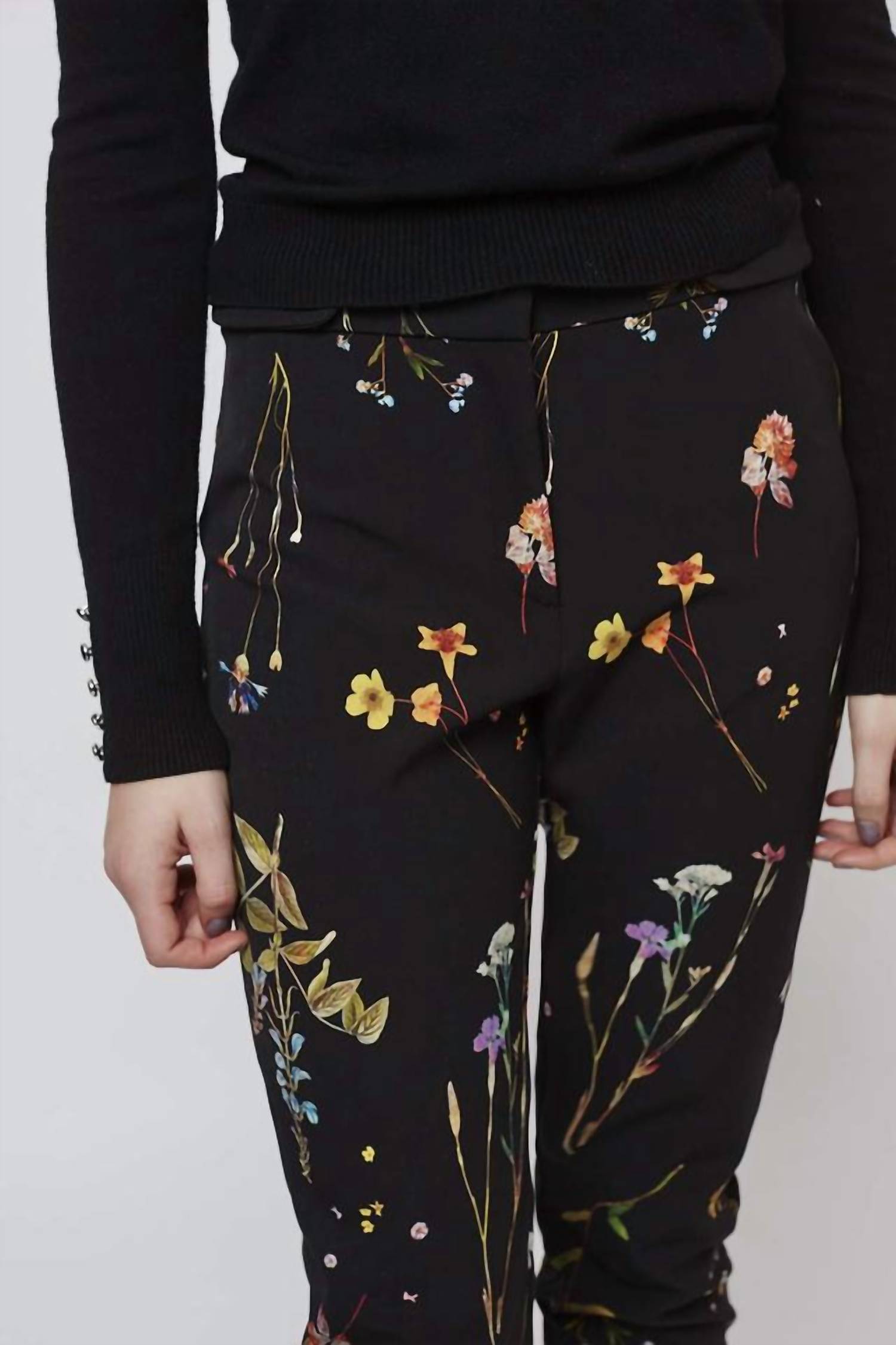 The perfect skinny pant for those stylish boots this season! Always be ready for work in these versatile cropped pants cut from a supple fabric with handy pockets and flattering front pleats. Lively floral print Zip fly with hook closure 91% polyester, 9% elastane Machine wash, line dry