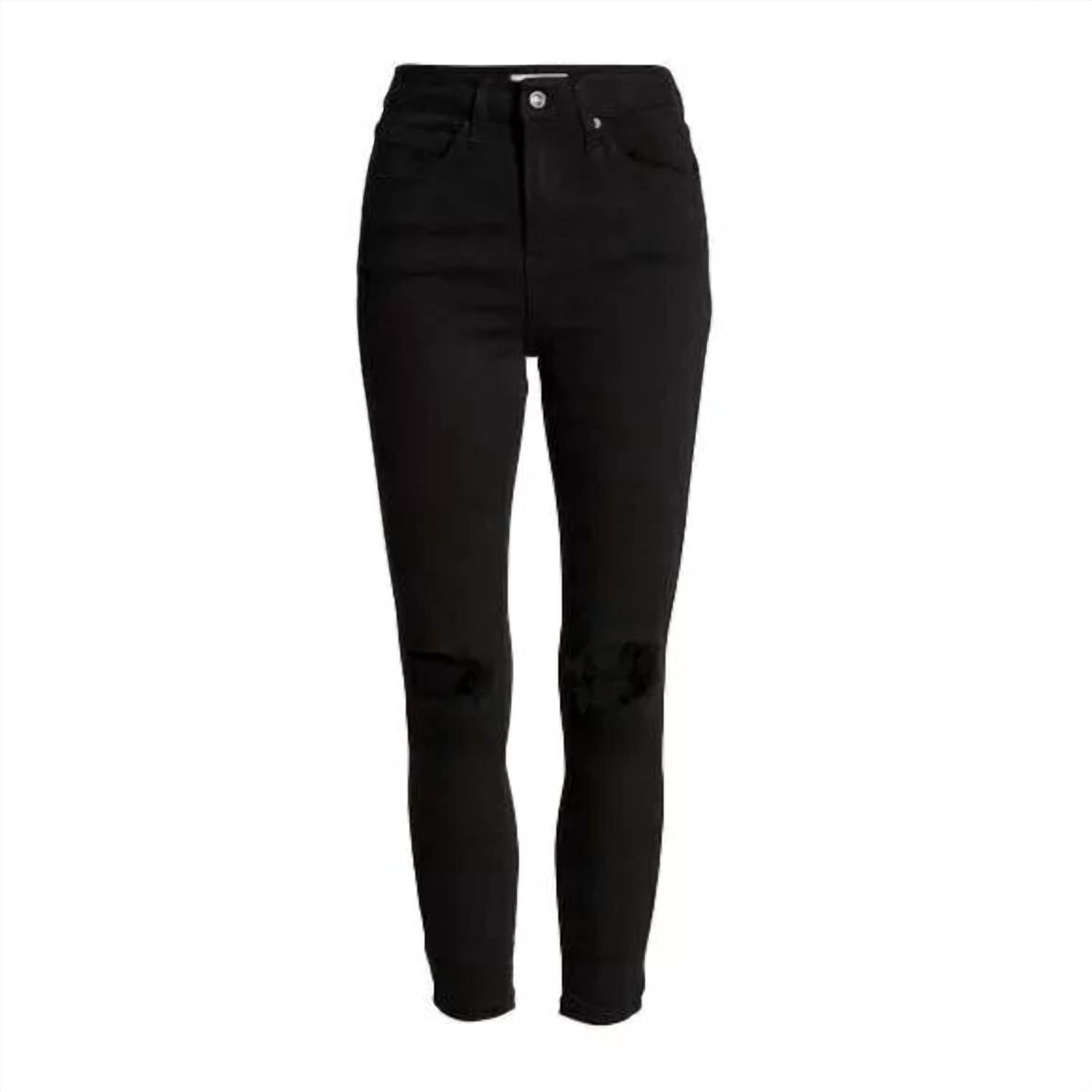 Everyone needs a good pair of skinny jeans and this is a style you'll keep reaching for no matter the season. These closet-staple cropped skinnies are ripped at the knees for a look that's edgy and flattering every time. Zip fly with button closure Five-pocket style High rise 91% cotton, 7% polyester, 2% elastane Machine wash, dry flat Inseam 28"