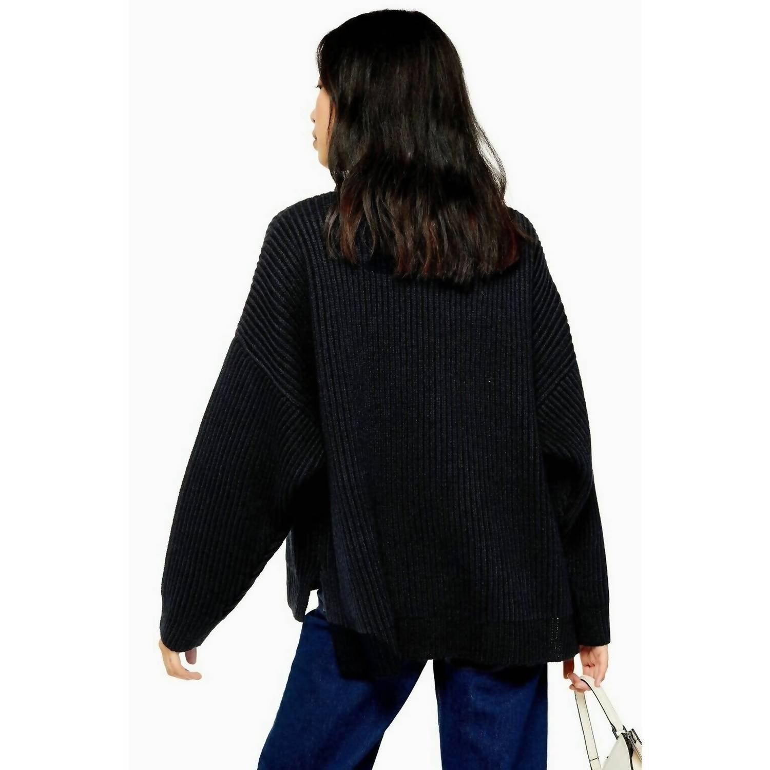 Topshop - Oversize Rib Knit Mock Neck Pullover Sweater