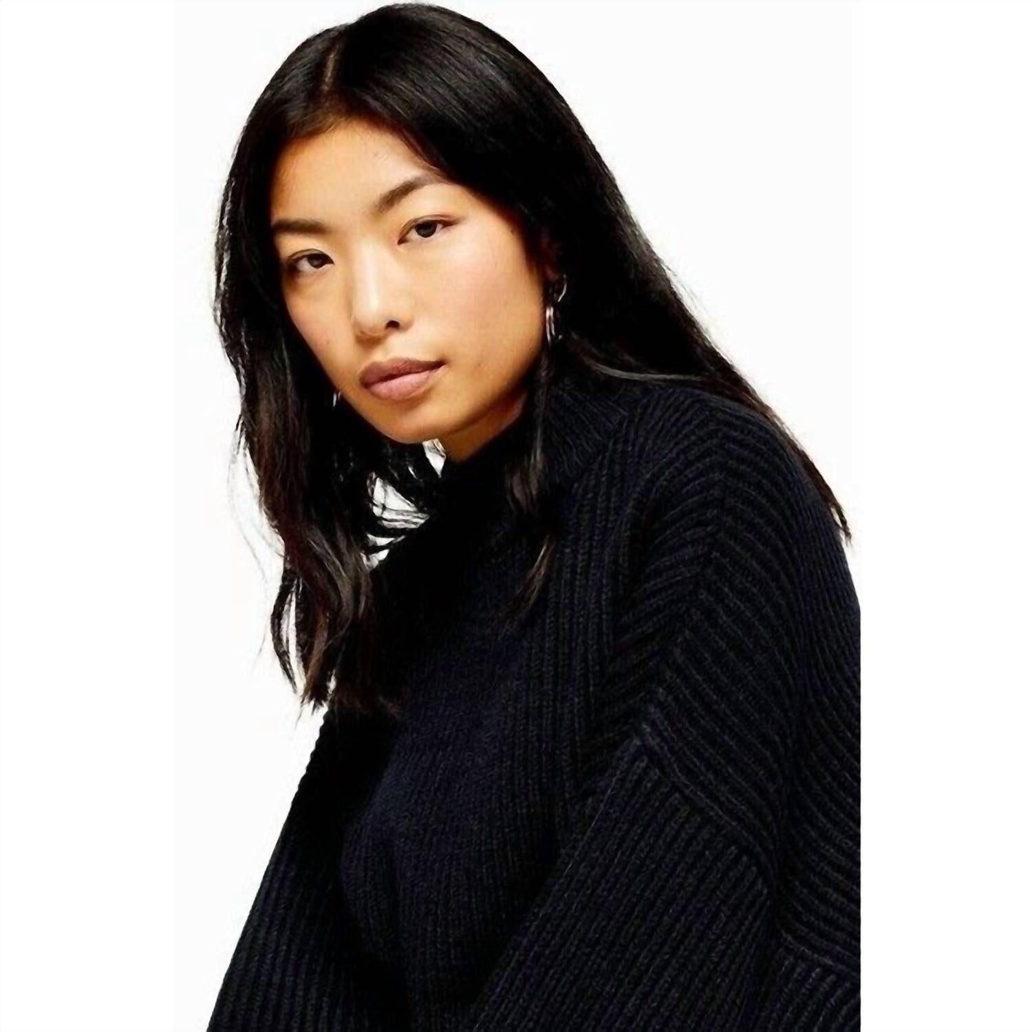 Layer under your favorite sweater or wear tucked into jeans for a perfectly polished winter look. Experience unparalleled comfort and effortless style with the Topshop Oversize Rib Knit Mock Neck Pullover Sweater. Boasting long sleeves and crafted from 100% acrylic, this ribbed heavy knit sweater offers a slouchy, oversized silhouette that flatters with a mockneck design. With thoughtful dimensions including a shoulder width of 26.5", a chest measurement of 24.5", and sleeve length of 16", it provides a perfectly roomy fit. Its solid black color and easy care—machine wash warm and lay flat to dry—make it a versatile staple in your wardrobe. Garment length is 24.5", offering both comfort and style.