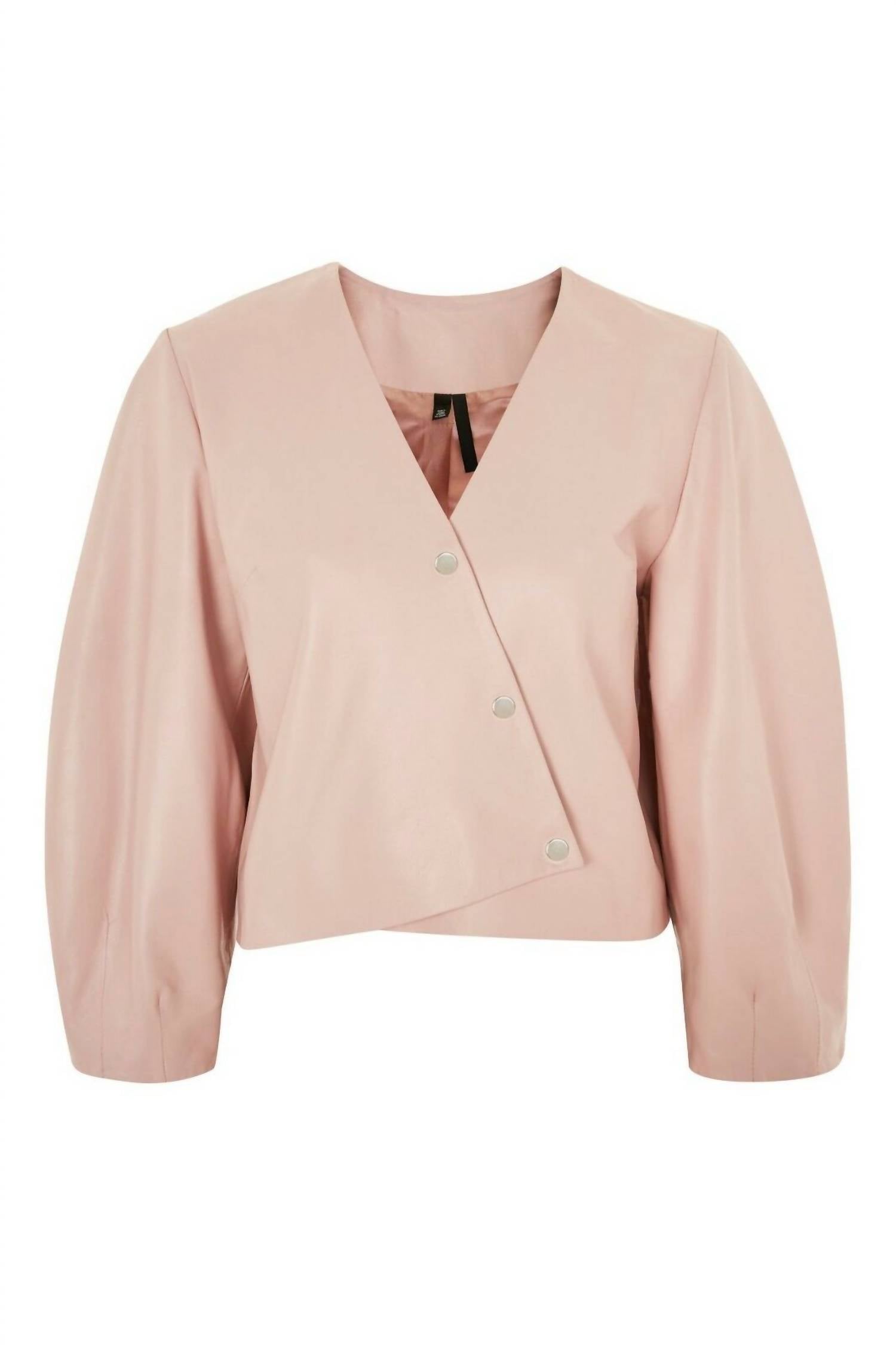 Topshop - Soft Wrap Top Snap On Cropped Leather Jacket
