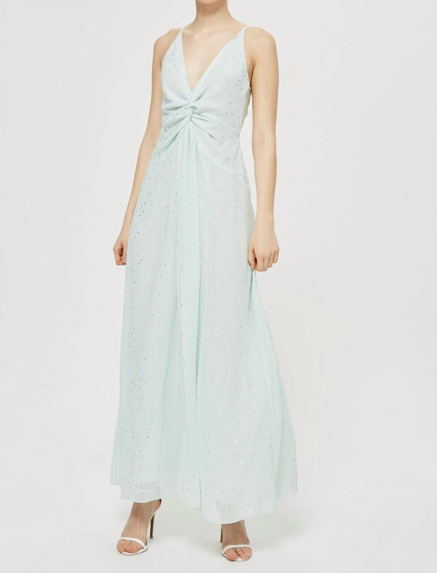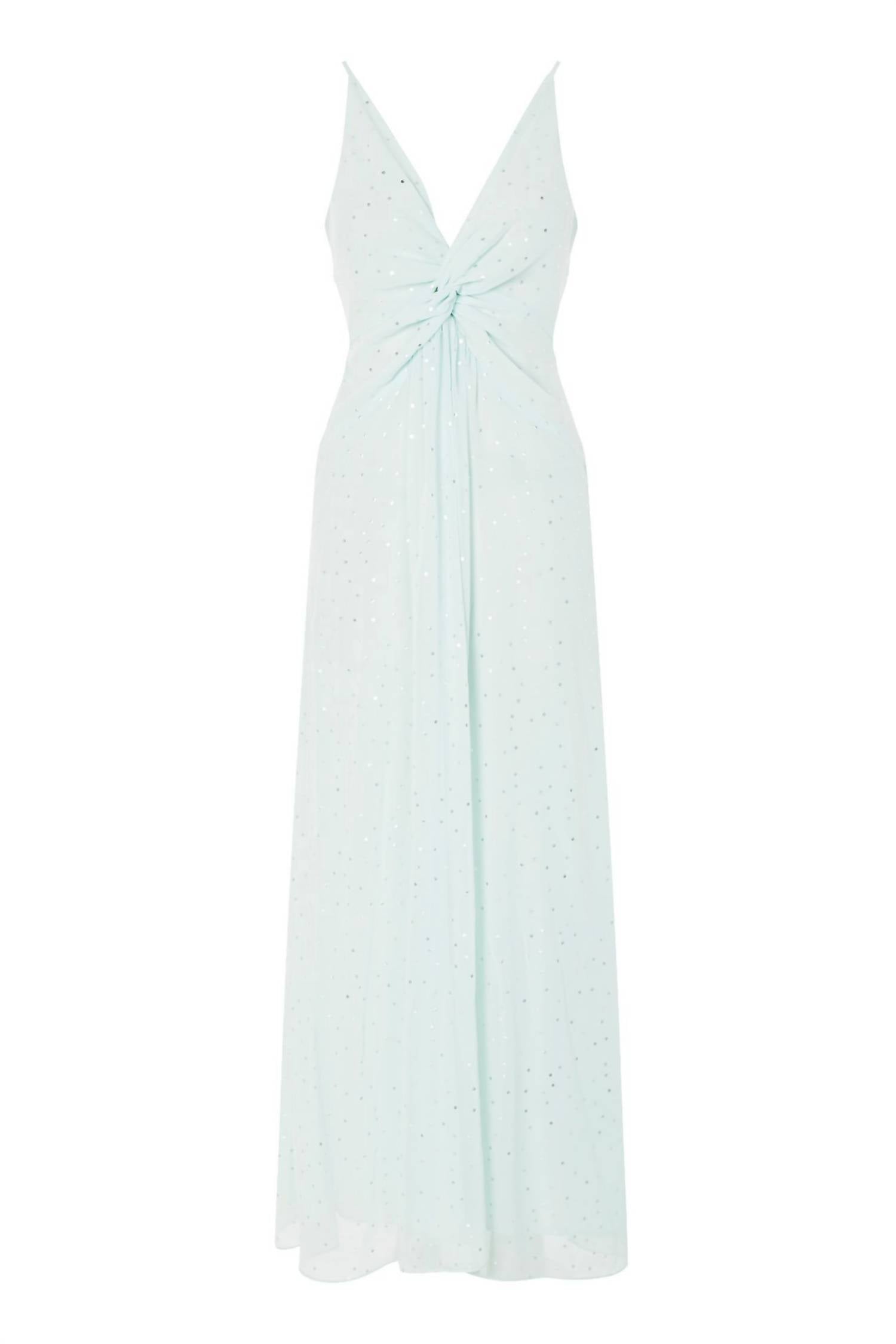 Style this maxi with your favorite statement necklace and sandals for the perfect look. Mint Green Foil Spot Chiffon Maxi Dress This mint-green maxi dress is a delicate romantic option for special occasions Its classic shape is finished with a twisted detail beneath the bust Finish the look with silver accessories 100% Polyester Machine wash Length 61"