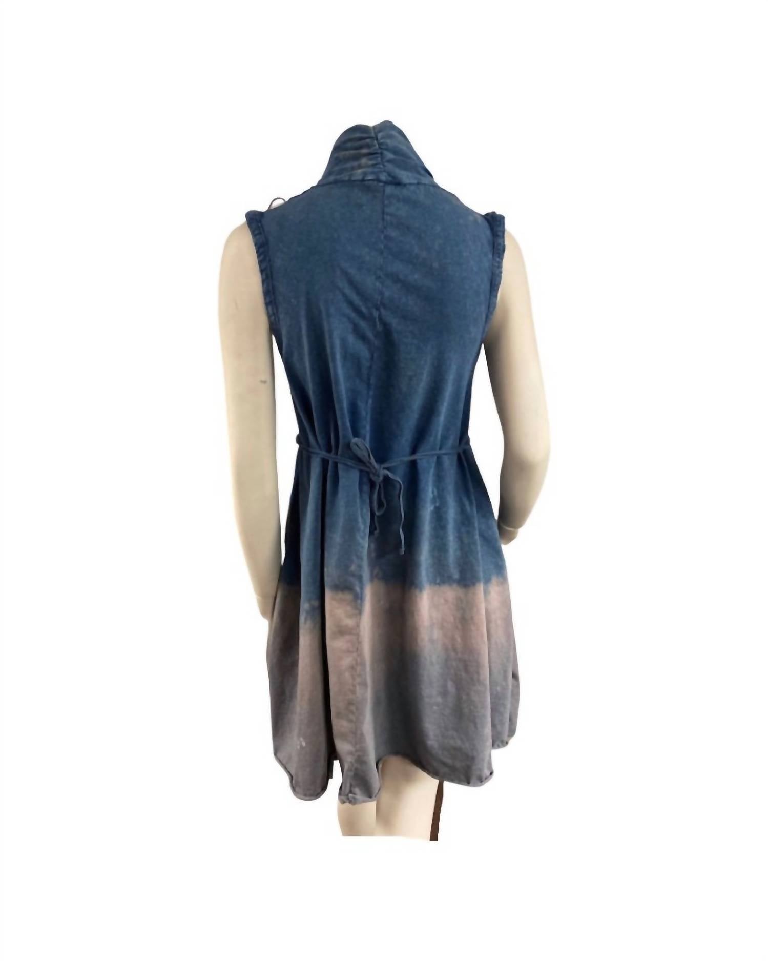 A short and breezy dress for those warmer days. This pocket dress tunic is the perfect blend of class, edge, and comfort, designed with a flattering drape that complements any body type. Crafted from soft 100% cotton jersey, it features an acid, mineral, and bleach reversal wash for a vintage distressed look with an ombré effect. Finished with a twill tape tie under the bust, it’s a versatile piece that combines effortless style with everyday ease.