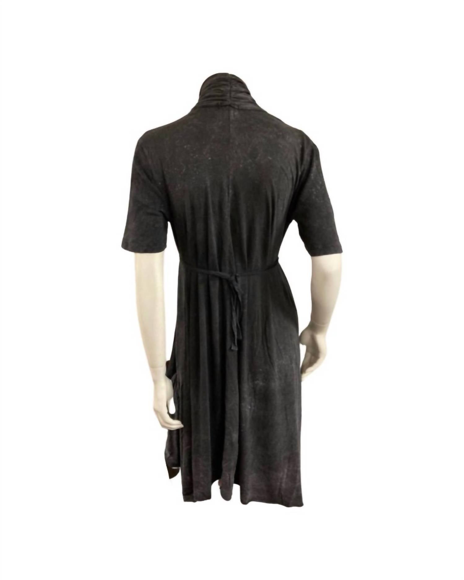 This pocket dress tunic blends class, edge, and comfort in a flattering silhouette. Crafted from soft 100% cotton jersey, it features ribbed knit stretchy sleeves and a twill tape tie under the bust for added shape. Perfectly draped, it’s designed to complement any body type while offering everyday ease and style.