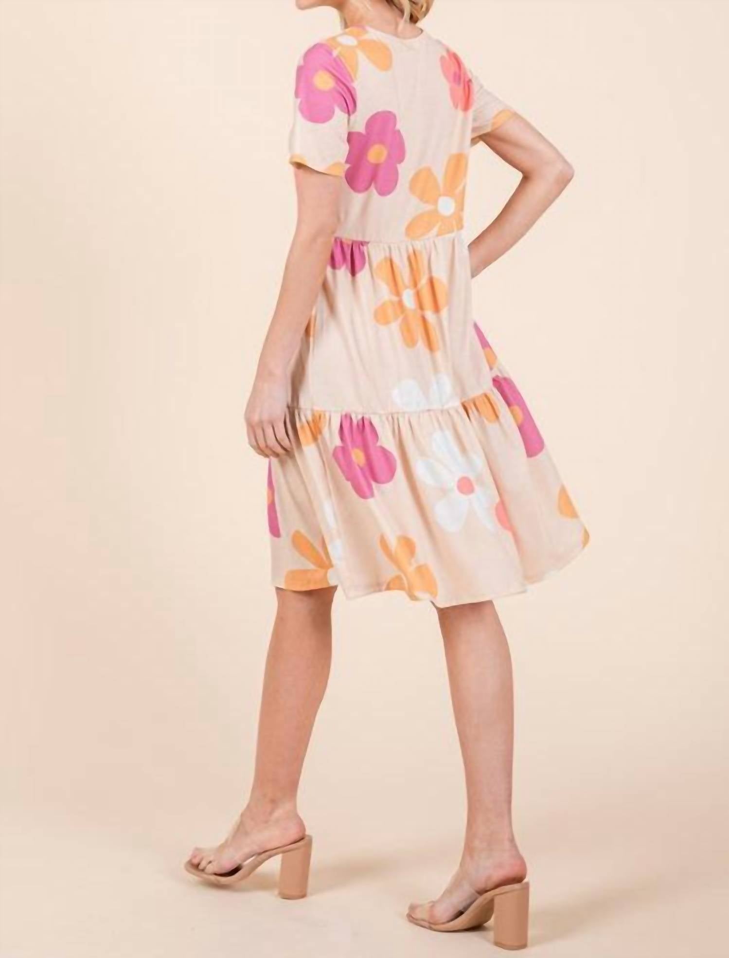Trendsi - Bombom Floral Round Neck Short Sleeve Tiered Dress
