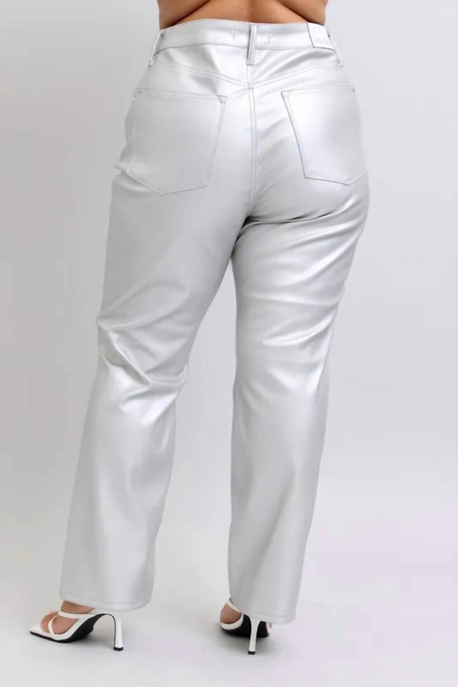 Trendsi - Women's Judy Blue Full Size High Waist Silver Faux Leather Pants Plus Size
