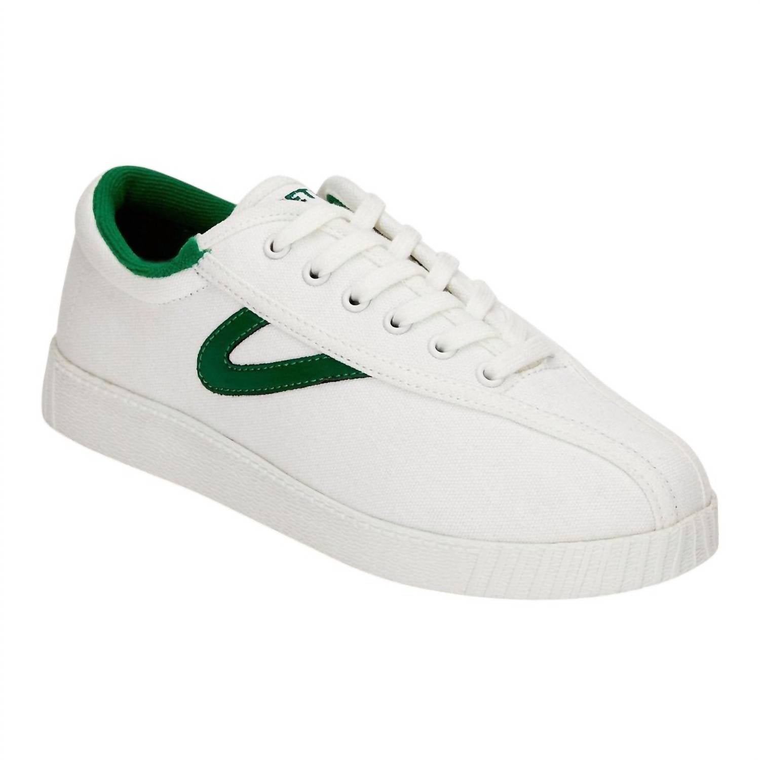 Get your daily steps in with these adorable sneakers. The Tretorn Women's Nylite Canvas Sneaker, in a chic color combination, is the perfect fusion of style and comfort. Designed in Sweden, these sneakers feature a 100% engineered canvas upper and are rounded off with a durable, rubber outsole composed of 50% natural gum rubber. A practical lace-up closure ensures a snug fit, while the EcoOrtholite insole, crafted from recycled material, provides exceptional comfort and sustainability. This classic tennis shoe's round toe and flat heel make it an effortlessly versatile addition to any wardrobe.