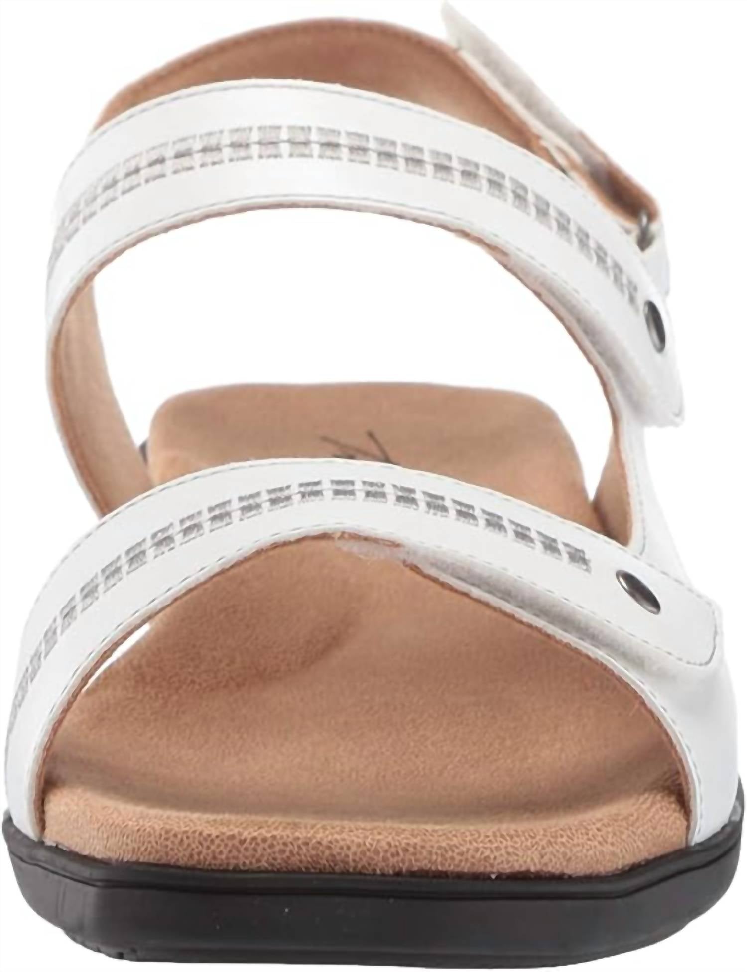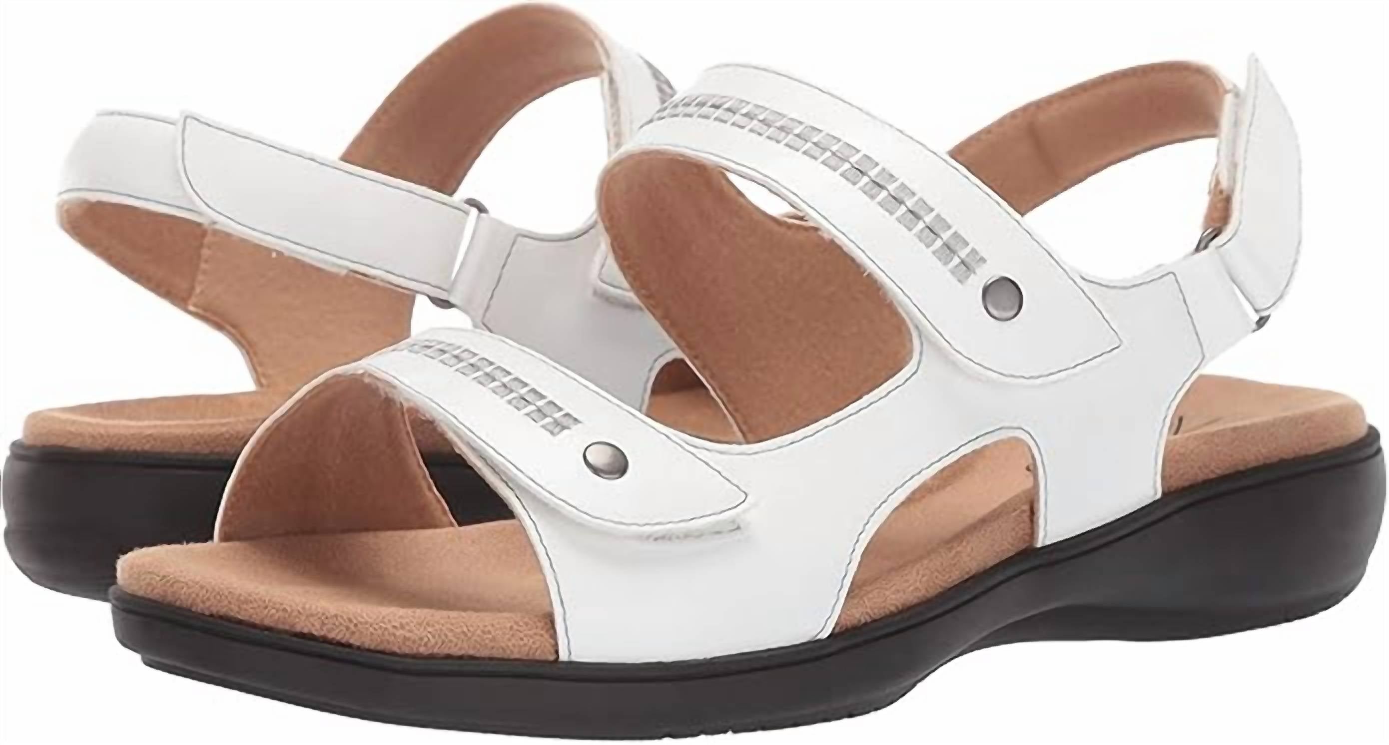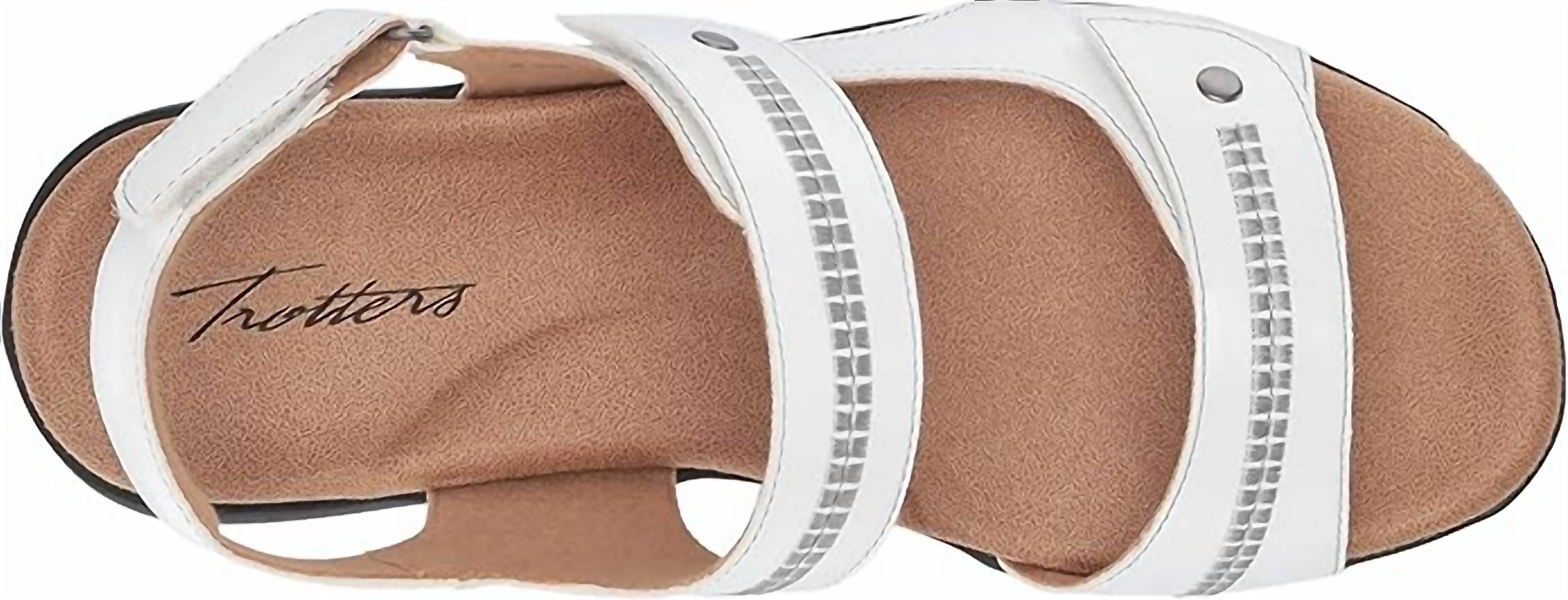 Classicly cute and all-day-wearable. We love this sandal. Step into comfort and style with the Women's Venice Leather Sandal by Trotters. These white, open-toe sandals feature adjustable straps for a perfect fit and boast a memory foam cushioned footbed with arch support to ensure all-day comfort. With a low platform heel height of 1.25 inches, these minimalist sandals are ideal for any casual outing. The Venice Leather Sandal is crafted from high-quality leather, exemplifying the perfect blend of functionality and elegance for the modern woman.