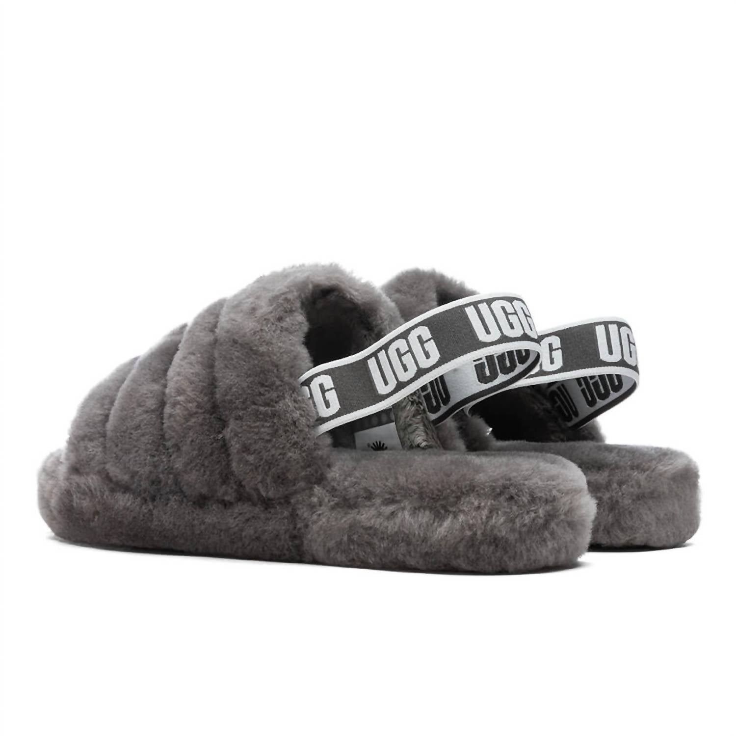 The soft sheepskin upper wraps the entirety of the foot to provide a comfortable and warm experience. A rubber outsole is placed underneath the silhouette to prevent slipping and further enhance the integrity of the slide. The signature UGG logo woven label placed at the sock liner completes the design.