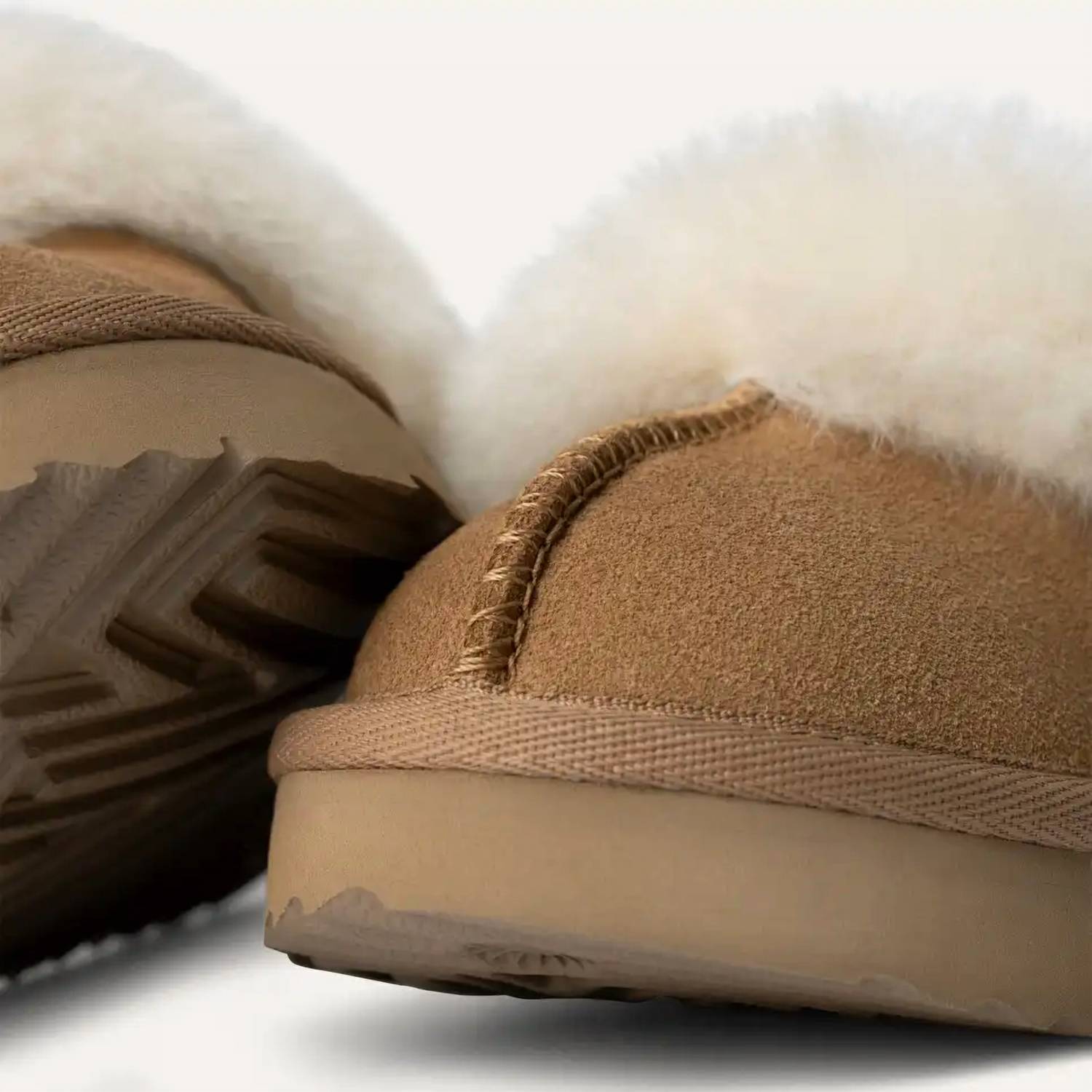Smaller in size but big on style, our kids' Funkette keeps the same slip-on silhouette, bold platform, and soft lining as the original. Crafted from rich suede with a cozy sheepskin collar, we added we added a backstrap with The Graphic UGG® Font to help secure feet on the go. Pair with our matching women's slipper for cute mini-me photo ops. The outsole of this product is either a sugarcane EVA outsole, which is a responsible compound using sugarcane foam that allows us to reduce dependency on fossil fuels by replacing petroleum-based ethylene, or a Treadlite by UGG™ outsole. Item No. 1130395T Suede upper Sheepskin collar Elastic strap with The Graphic UGG® Font 10mm UGGplush™ 80% upcycled wool, 20% TENCEL™ Lyocell vamp lining or 10mm UGGplush™ 60% upcycled wool, 40% TENCEL™ Lyocell vamp lining 10mm sheepskin insole EVA midsole Sugarcane EVA outsole or Treadlite by UGG™ EVA outsole Textile binding made from 100% recycled polyester fibers 0.75" heel height Woven label with The UGG® Logo on insole RN 88276 This product contains real fur from sheep or lamb. Fur may be sourced from Australia, Ireland, the United Kingdom, or the United States. It has been artificially dyed and treated.
