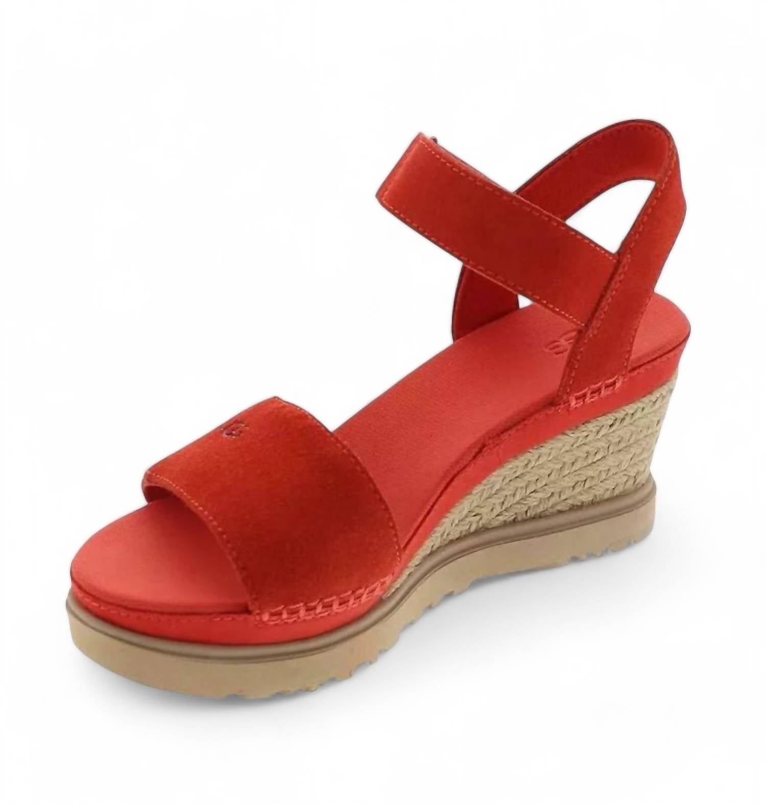 Dresses, denim, shorts... these wedges go with just about anything. The Women's Ileana Strap Wedge Sandal features a luxurious suede upper complemented by elastic gore for added flexibility. An adjustable ankle strap ensures a personalized fit, while the textile lining and sockliner provide comfort against the skin. The jute-wrapped midsole adds a natural touch, and the dual density EVA outsole offers excellent support and traction. With a 1.25-inch platform height and a 3-inch wedge heel, this sandal combines style and comfort effortlessly.