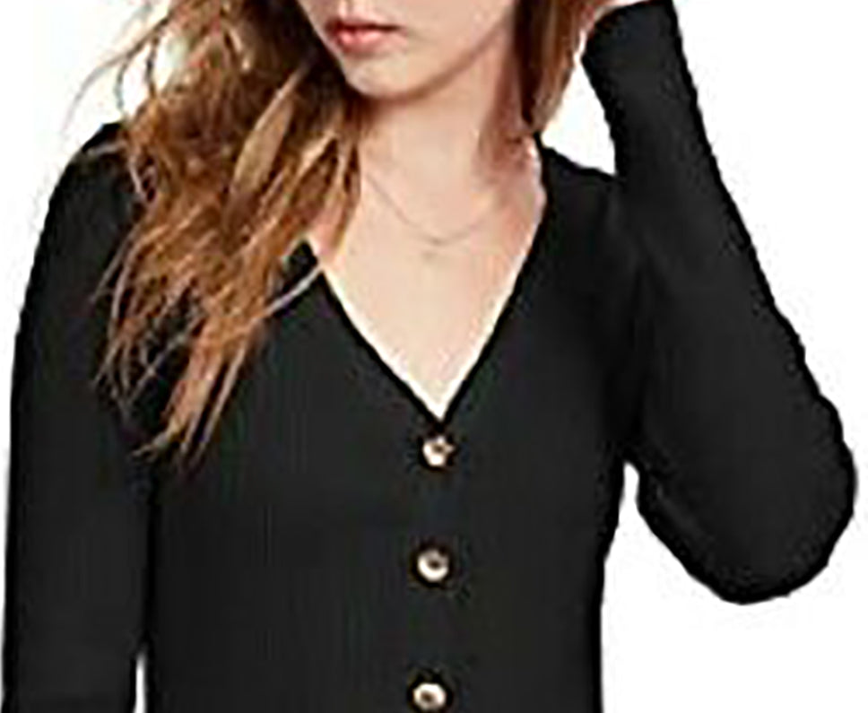 Ultra Flirt Junior's Cropped Ribbed Cardigan Sweater Black Size Medium
