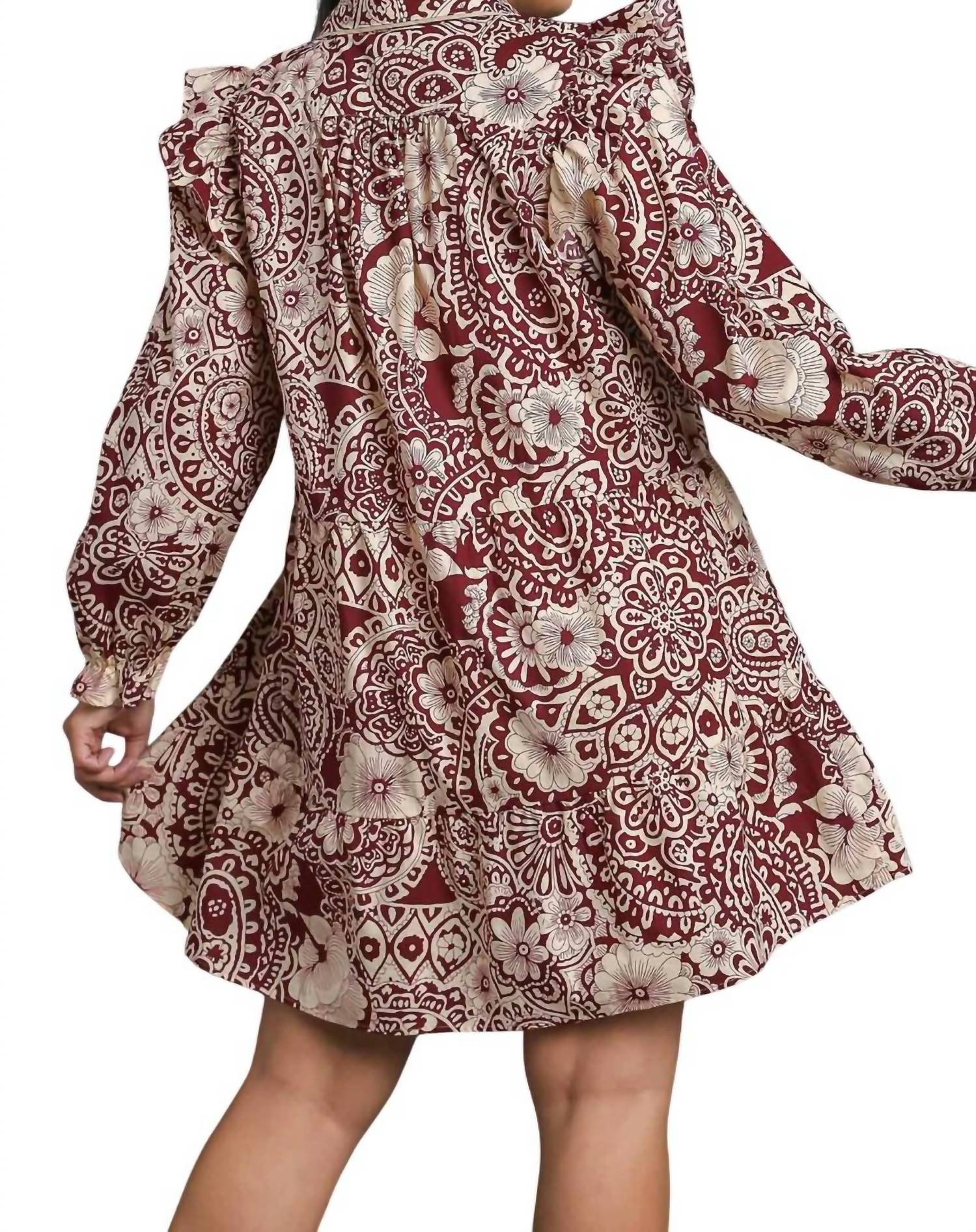 A short and breezy dress for those warmer days. Elevate your wardrobe with the Always Will Dress by Umgee, a stunning two-tone print mini dress in black. Crafted from 100% cotton, it features flutter ruffle long sleeves and a collared split neckline for a sophisticated touch. This women's patterned dress is easy to wear with its pull-on closure design. Model is 5'9" and wearing a size small.