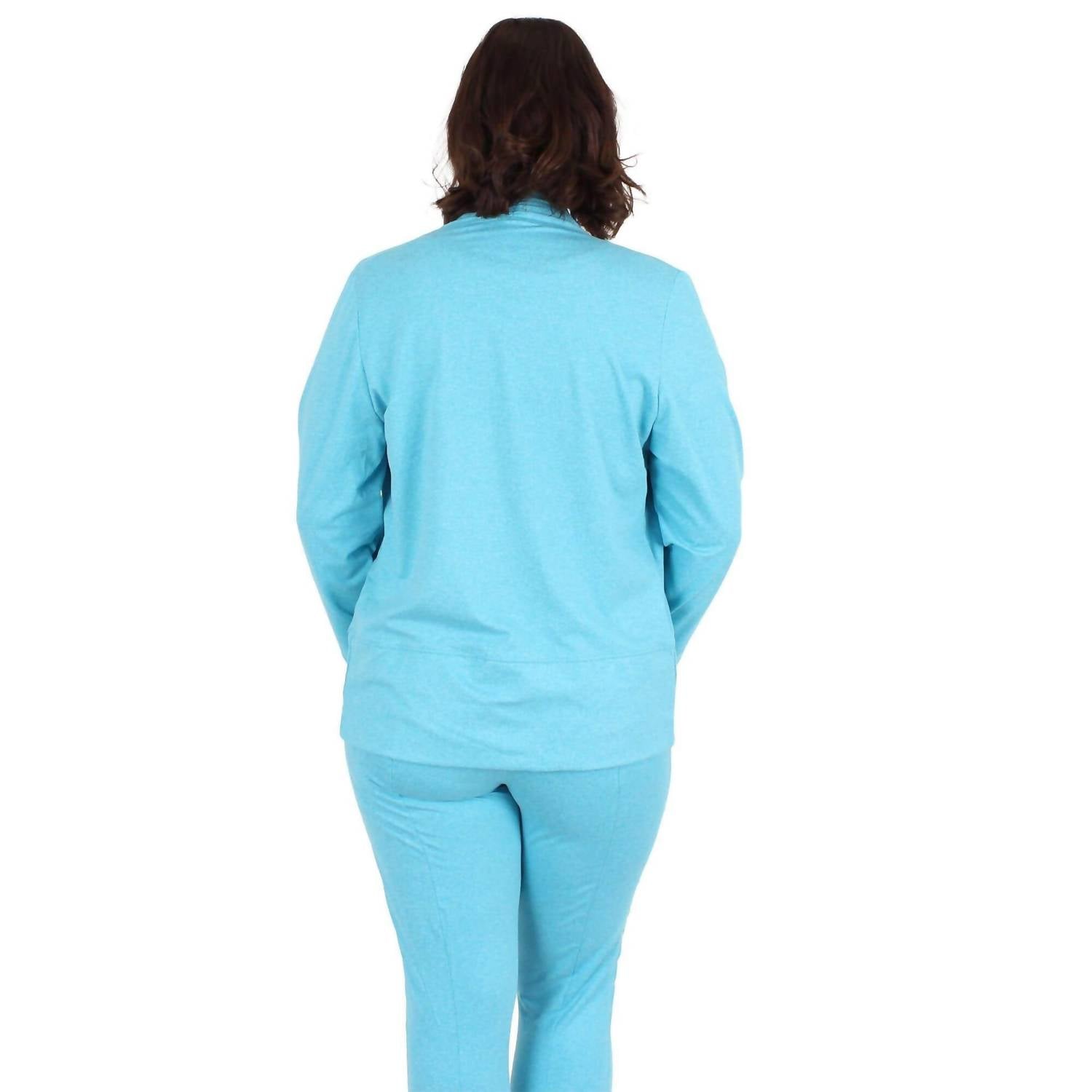 This cardigan will be a sweater-rotation favorite. This cardigan features roomy, comfortable arms, long sleeves, and an open front. It has 2 interior pockets and is made from 87% polyester and 13% spandex. Machine wash and hang to dry. Made in the USA.
