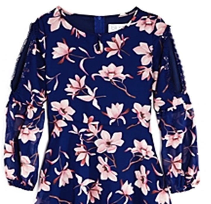 Us Angels Girl's Floral Peekaboo Sleeve Dress Blue Size 16