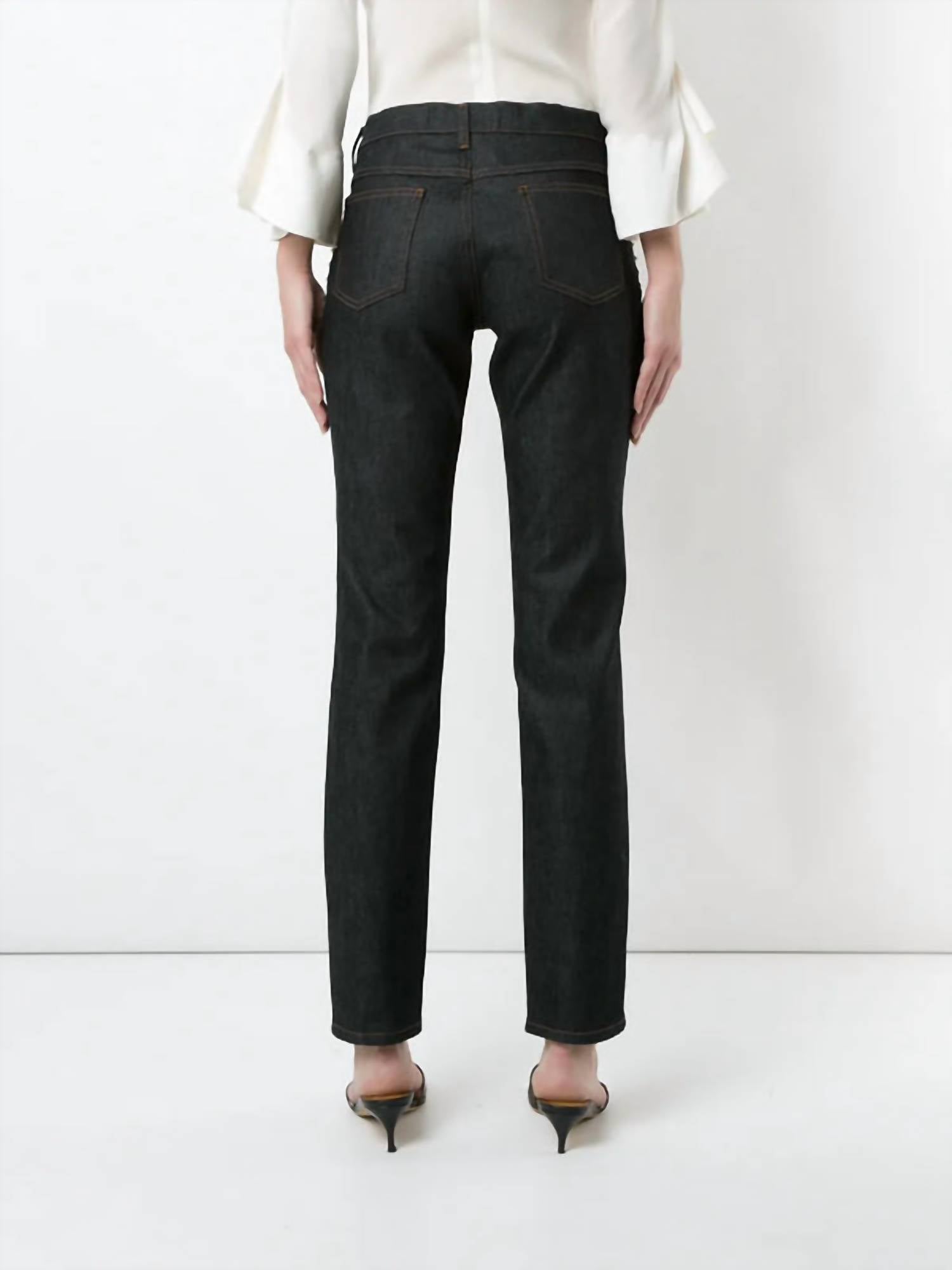 These must-have jeans are fit to perfection. Embrace iconic style with the Women's Rockstud 5 Pockets Denim Jean by Valentino Garavani. These straight-leg jeans in navy blue feature signature gold-tone Rockstud detailing along the side, providing a striking contrast. Crafted from denim with a mid-rise waist and ankle-length cut, they offer both comfort and elegance. Closure: Front button and zip fastening with classic five-pocket styling, made for any occasion. Imported quality with an unmistakable look.
