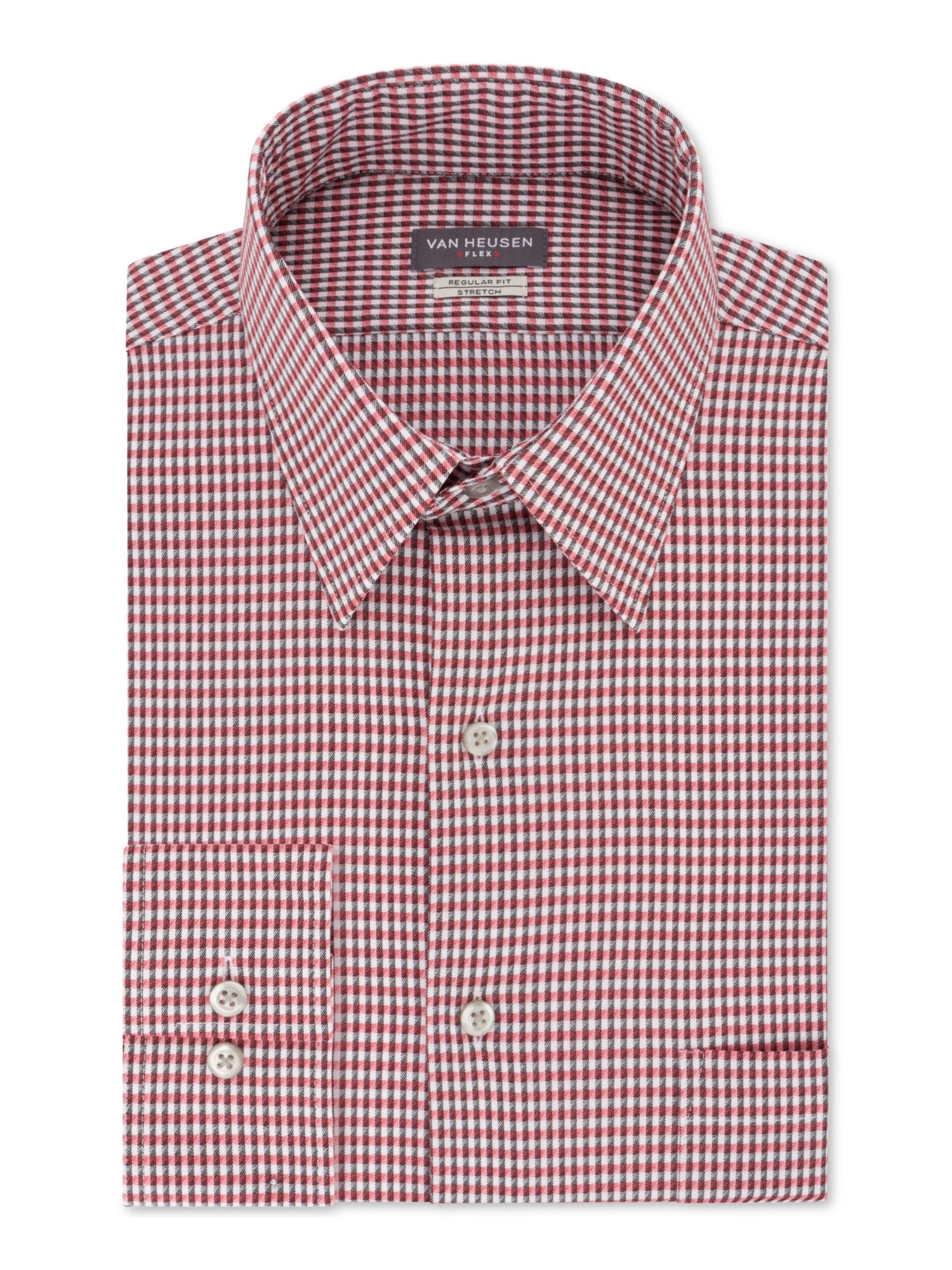 VAN HEUSEN Men's Framed Gingham Collared Classic Fit Stretch Dress Shirt Red Size 14.5X32-33