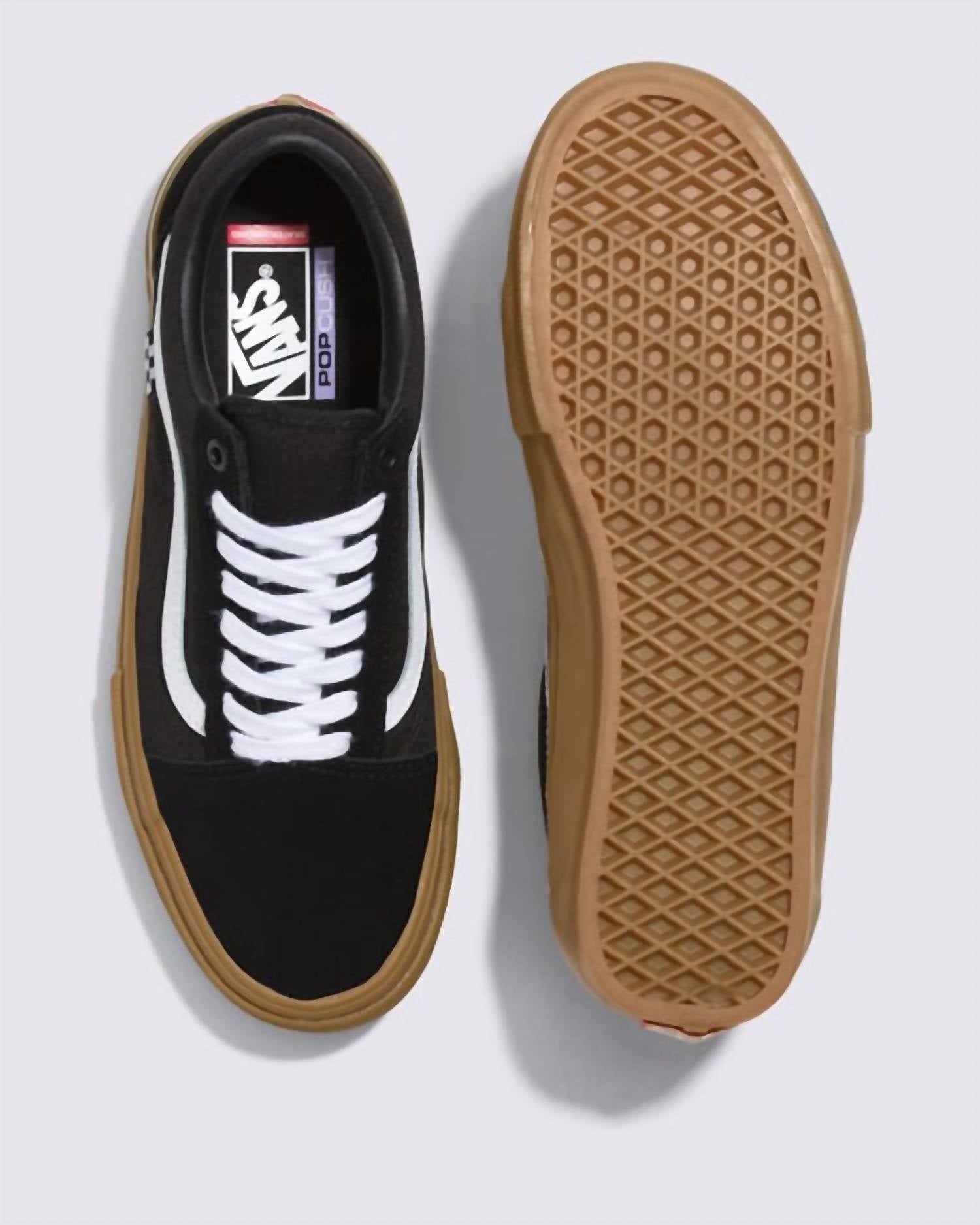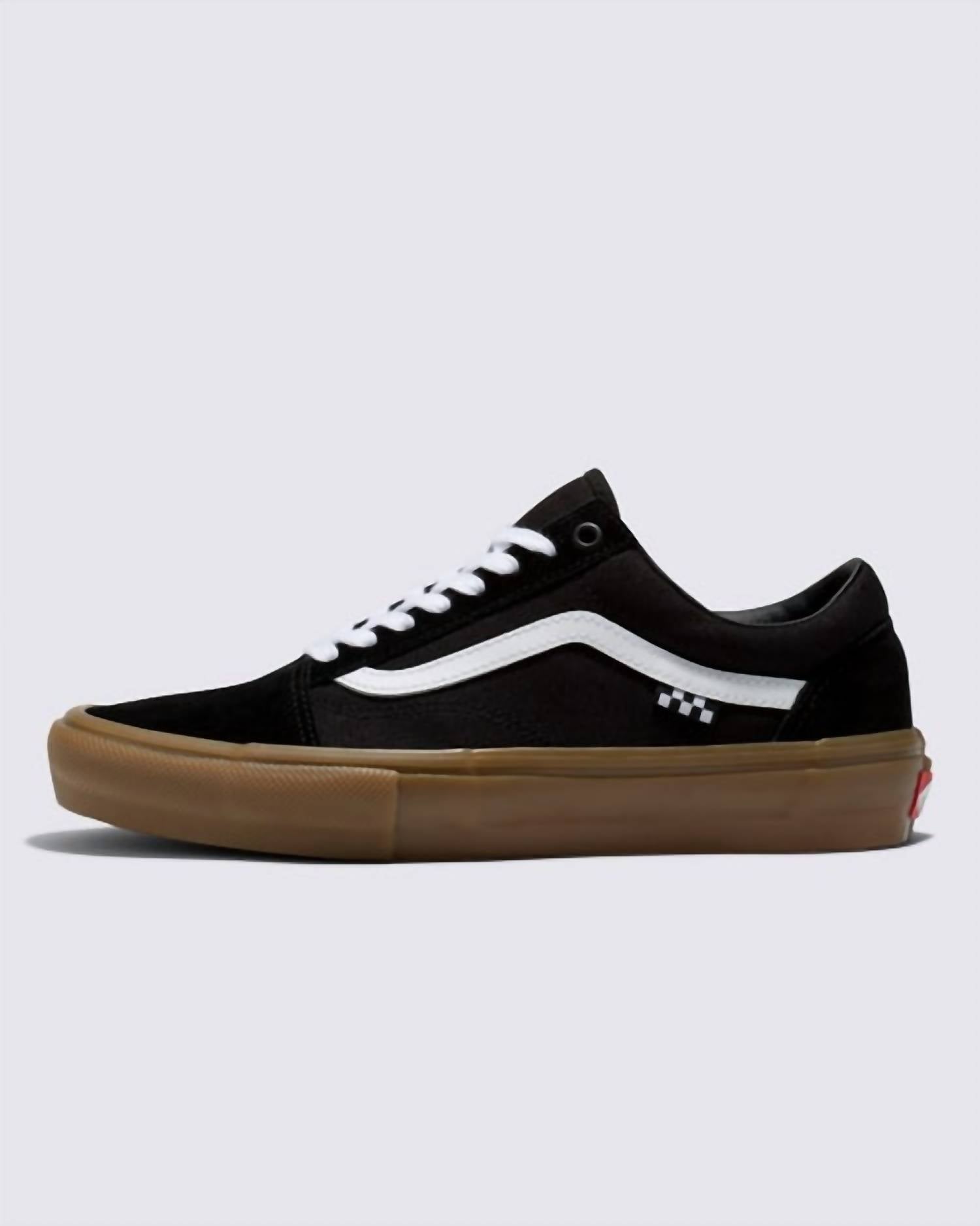 Introducing the Unisex Skate Old Skool Shoes by Vans, a stylish choice for streetwear enthusiasts. Crafted from sturdy canvas, these sneakers are designed in a sleek black/gum color combination. Featuring a round toe and flat heel, these low-top skateboarding shoes are perfect for vacation adventures or spring outings. Whether you're hitting the skate park or stolling around town, these sneakers offer a comfortable fit for boys in the adult age group.