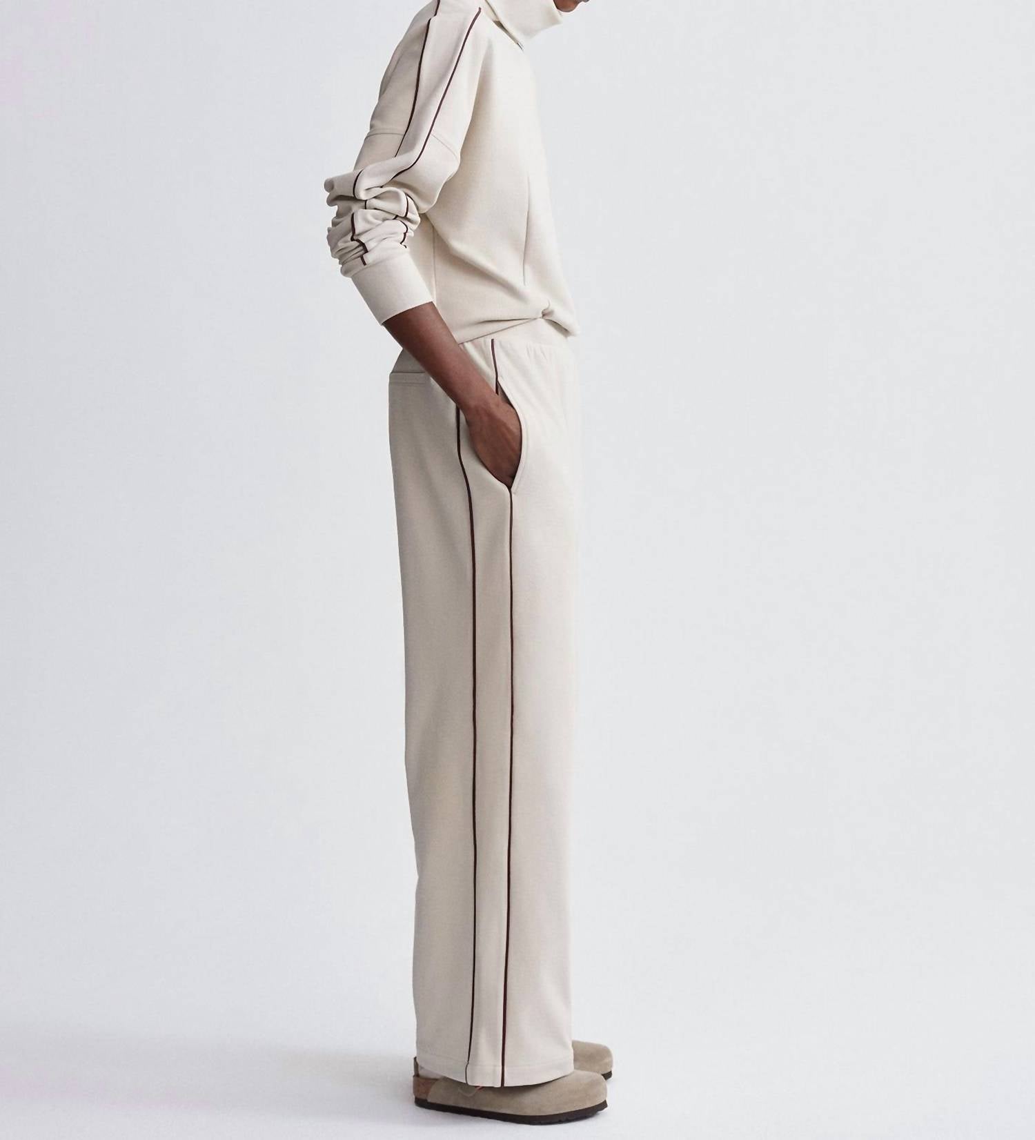 Discover the Brushed Rib Wide Leg Pants by VARLEY in Cement Marl/Bitter Chocolate, a chic addition to your wardrobe. These pants feature a high rise with a flattering 12" front rise and a 30" inseam, offering a relaxed fit that mirrors the comfort and style of VARLEY’s DoubleSoft® line. Crafted from 92% polyester and 8% elastane, these solid wide-leg pants include practical pockets and a convenient pull-on closure. Care is effortless with machine wash cool and line dry instructions, providing easy maintenance without compromising on style.