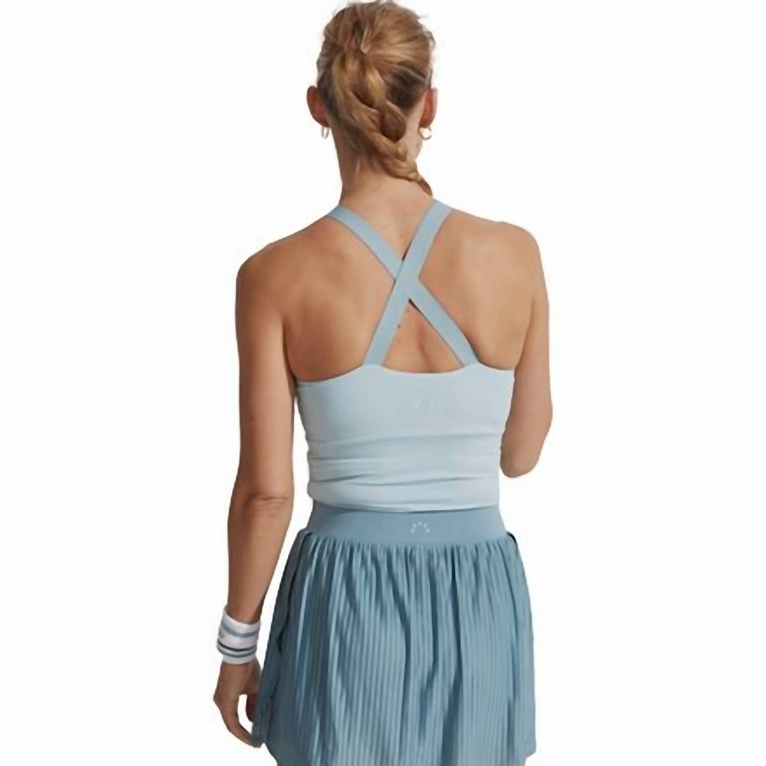 Fit, fabric and functionality. This tank top checks all the boxes. Self: 88% poly, 12% elastaneLining: 87% nylon, 13% elastaneMade in ChinaMachine washBuilt-in shelf bra with removable padded cupsCrisscross back straps