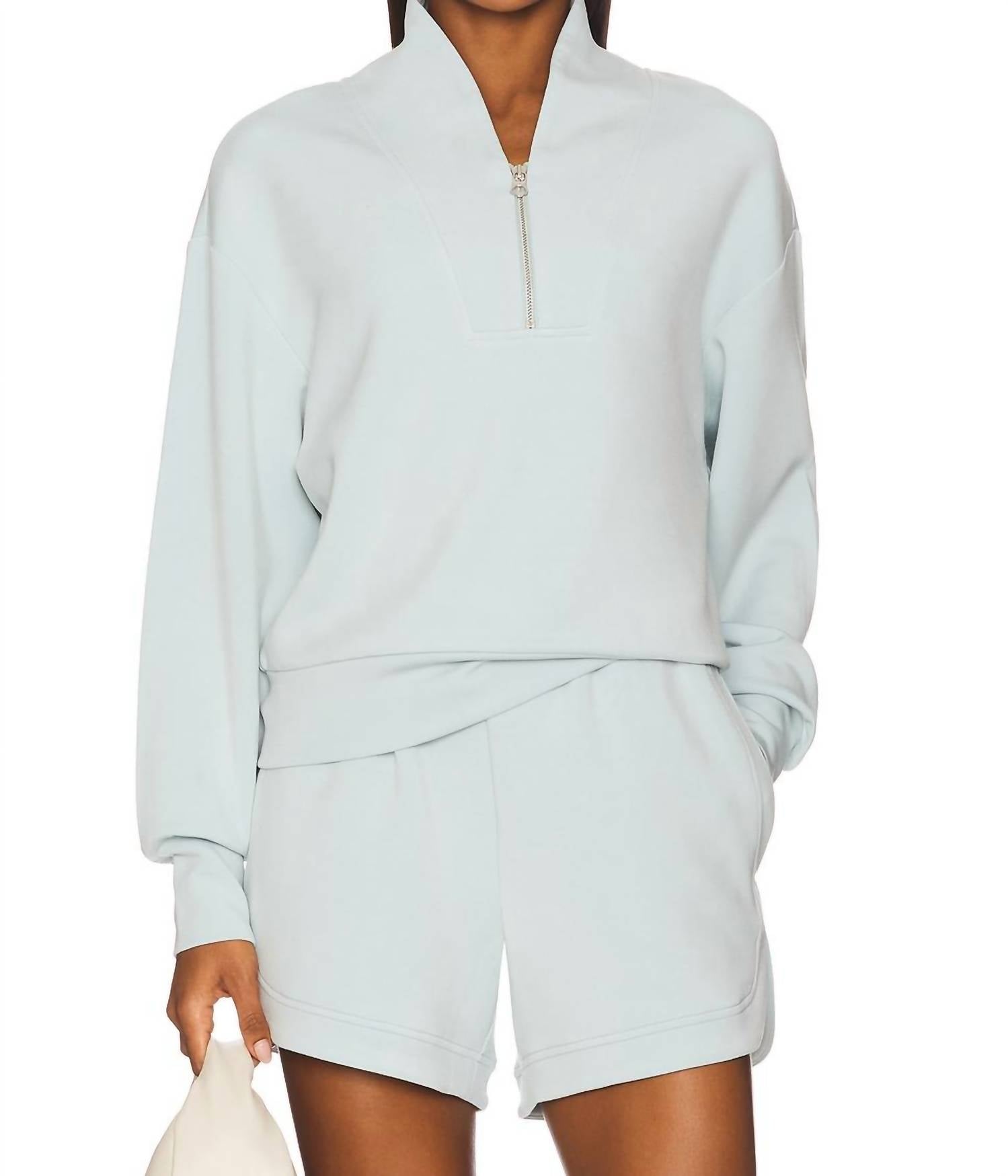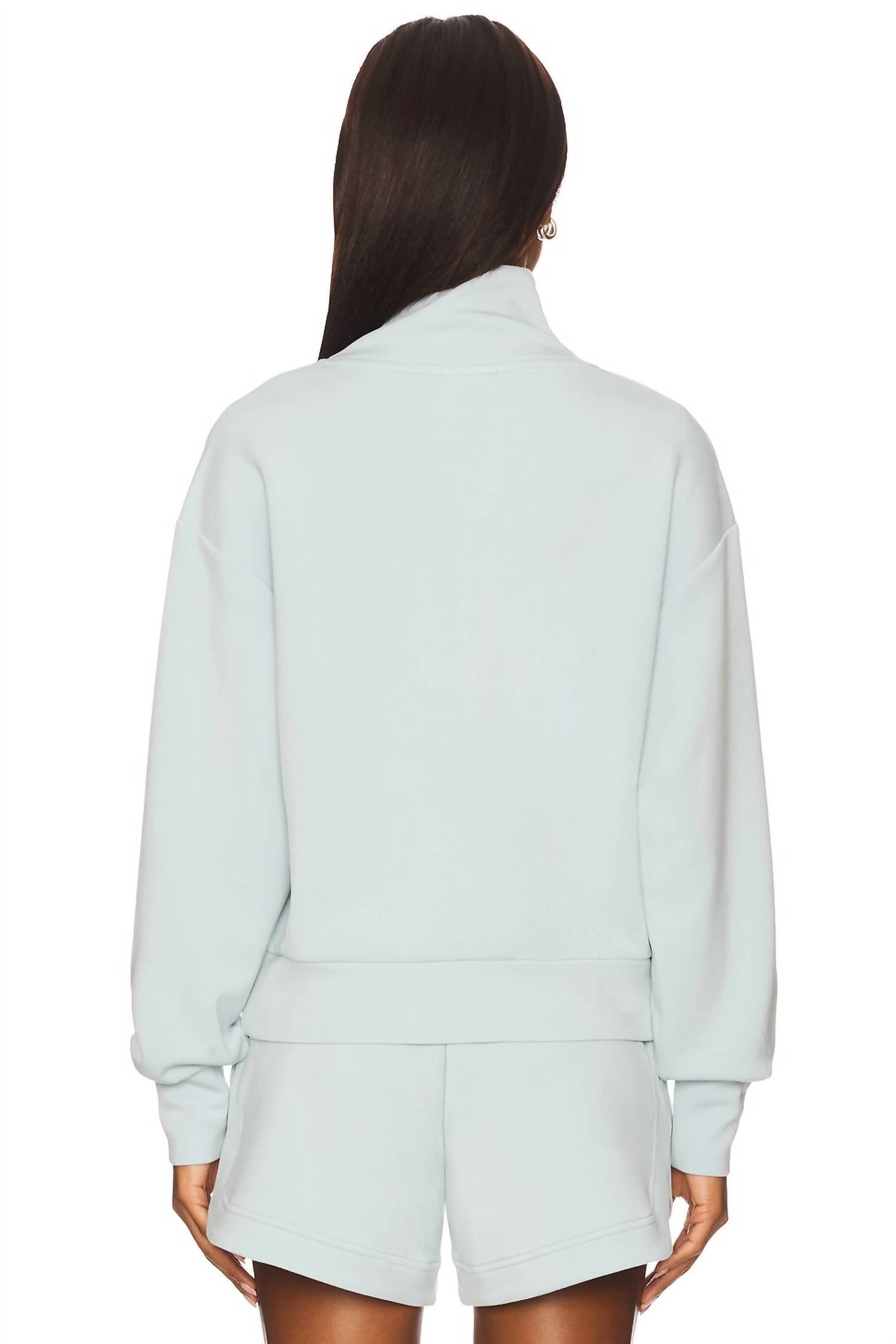 Cozy fabric, impeccable design - Meet the sweatshirt that you'll never want to take off. Meet the Davidson Front Zip Sweatshirt from VARLEY, a chic layering piece in a serene Ether Blue with a subtle stripe pattern. Crafted from a luxe viscose blend, this heavyweight jersey features long sleeves and a sophisticated mockneck for a touch of preppy style. Its cropped design provides a versatile 22-inch garment length, ideal for pairing with coordinating pieces. Finished with a front partial zip closure, it offers convenience and comfort, effortlessly aligning with your fall travel ensemble. Care for this stylish sweatshirt with a simple machine wash. 81% viscose, 15% polyester, 4% elastane.
