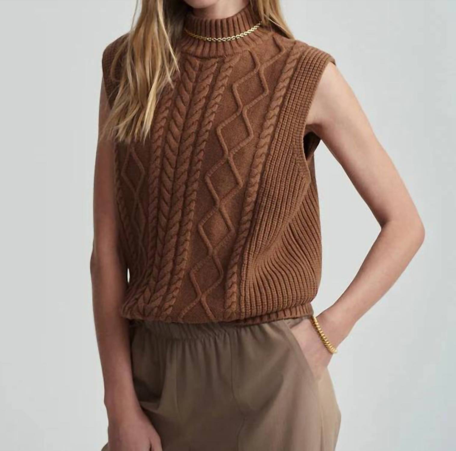 That extra layering piece you didn't know you needed! Elegant cable knit design. Relaxed fit with dropped armholes. Fits true to size. 50% Viscose, 30% Polyester, 20% Nylon. Machine wash cool.