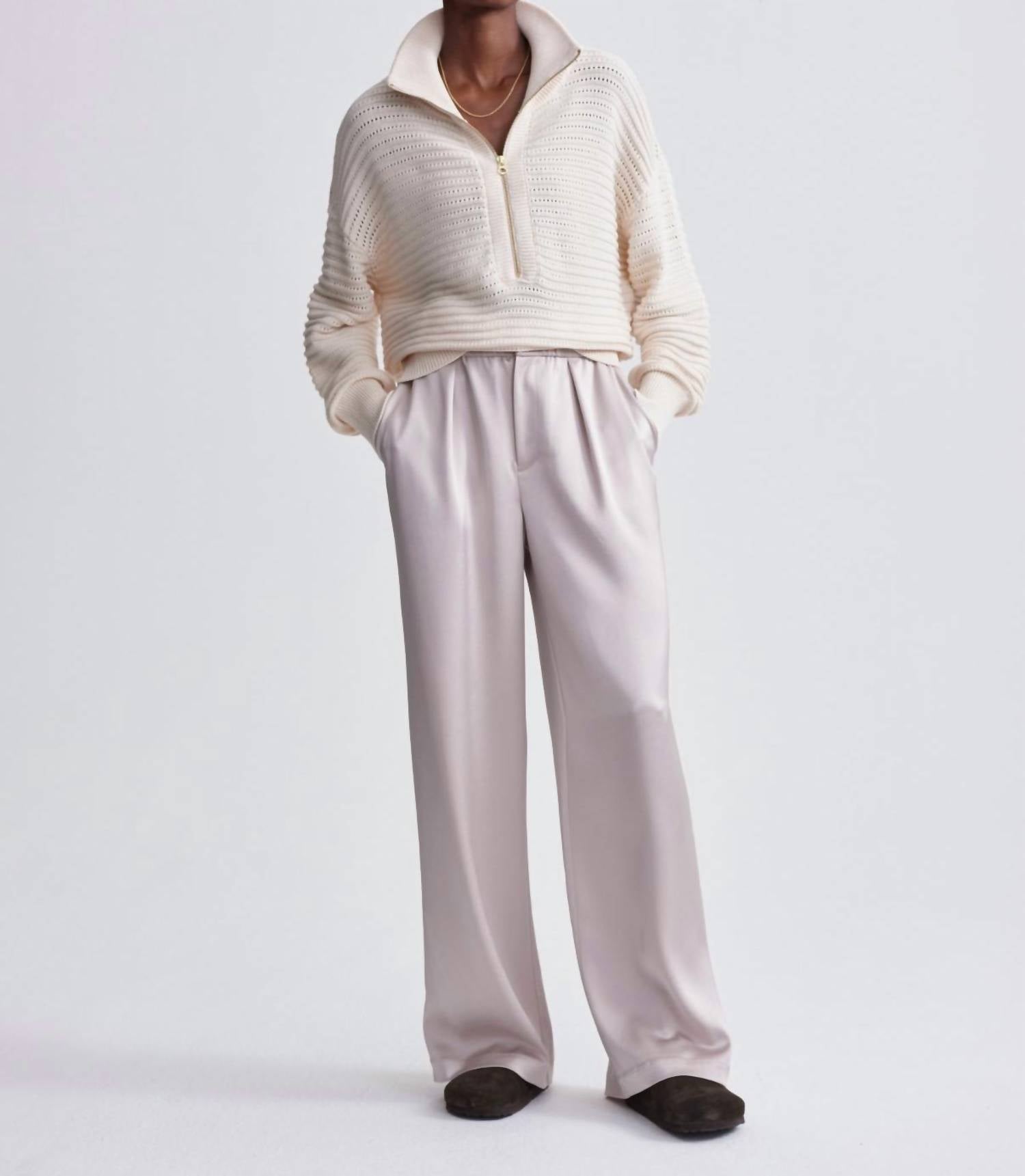 Layer under your favorite sweater or wear tucked into jeans for a perfectly polished winter look. Discover the Tara Pointelle Half-zip Knit Pullover by VARLEY, a chic addition to your fall wardrobe in the elegant shade of Whitecap Grey. Offering long sleeves and crafted entirely from cotton, this pullover is ideal for layering and travel occasions. With a zip closure and a mockneck design, it presents a casually refined look enhanced by Ottoman-style pointelle stitching and a textured ribbed hem. Caring for this piece is simple, as it requires a machine wash on a cool, gentle cycle and should not be bleached, tumble dried, ironed, or dry cleaned.