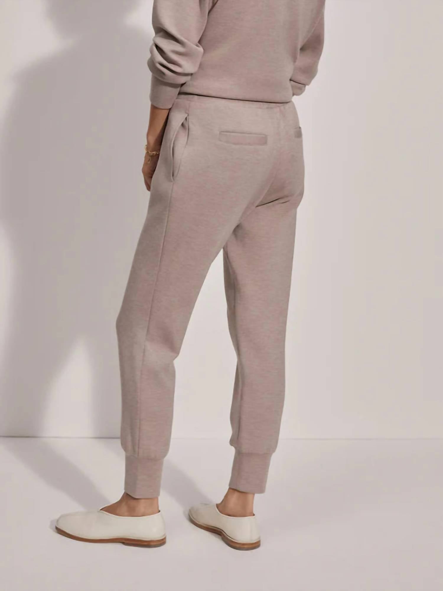 Pair these with your favorite sneakers for an effortlessly cool look. Introducing the Slim Cuff Pant by VARLEY in a sophisticated Taupe Marl, designed to enhance your figure with a sleek, tailored fit. Featuring a chic cuffed hem, these pants combine practicality and style with an elasticated waistband, internal drawcord, and convenient side and back pockets. Crafted from a Viscose Blend (72% Viscose, 23% Polyester, 5% Elastane), the 27.5-inch garment provides the perfect blend of comfort and elegance. Closure: Pull On. Care: Machine wash and lay flat to dry.