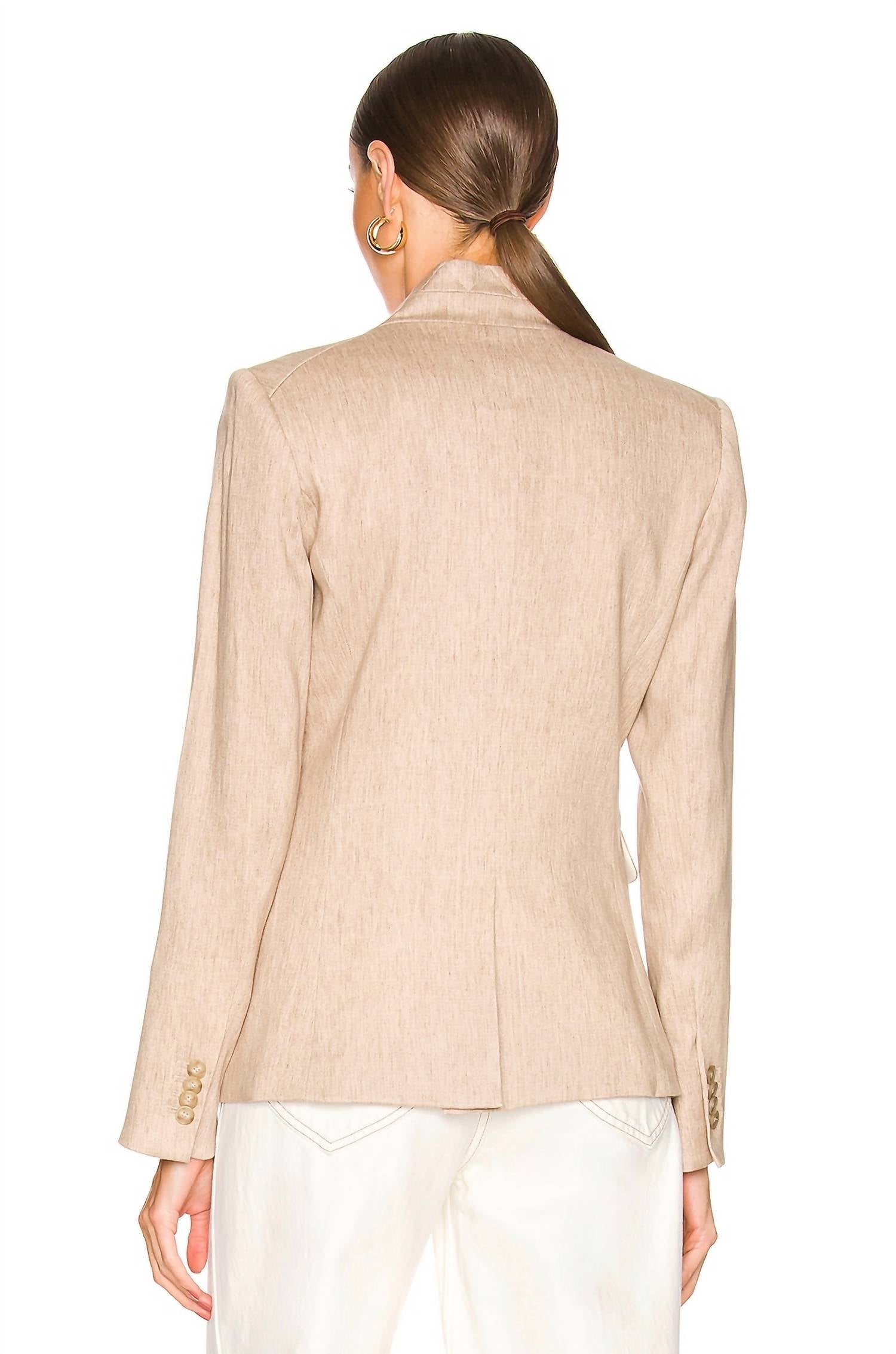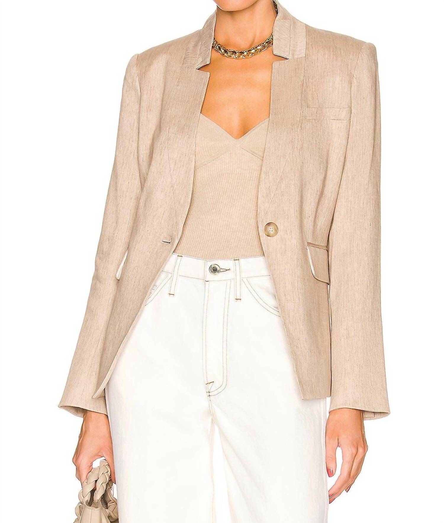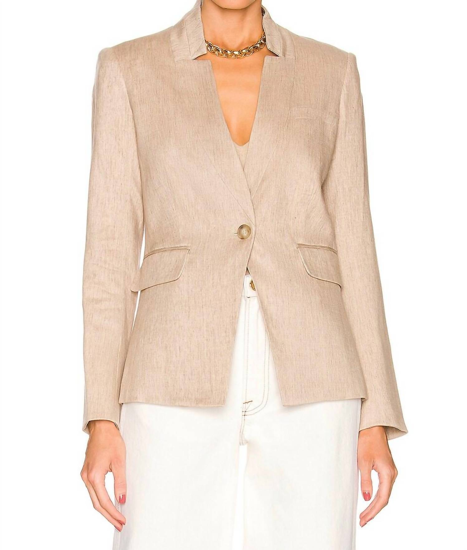 Tailored to perfection, this blazer will be your go-to jacket for years to come. This Dickey jacket features a singular front button closure, lightly padded shoulders for added structure, and a stylish breast welt pocket. It includes side flap pockets and buttoned cuffs for functional elegance. Crafted from a blend of 69% linen, 29% viscose, and 2% elastane, with a 100% polyester lining, this jacket offers a comfortable fit and refined look. Dry clean only to maintain its quality. The model is 5'10.5" and is wearing a size 2. Made in the USA.
