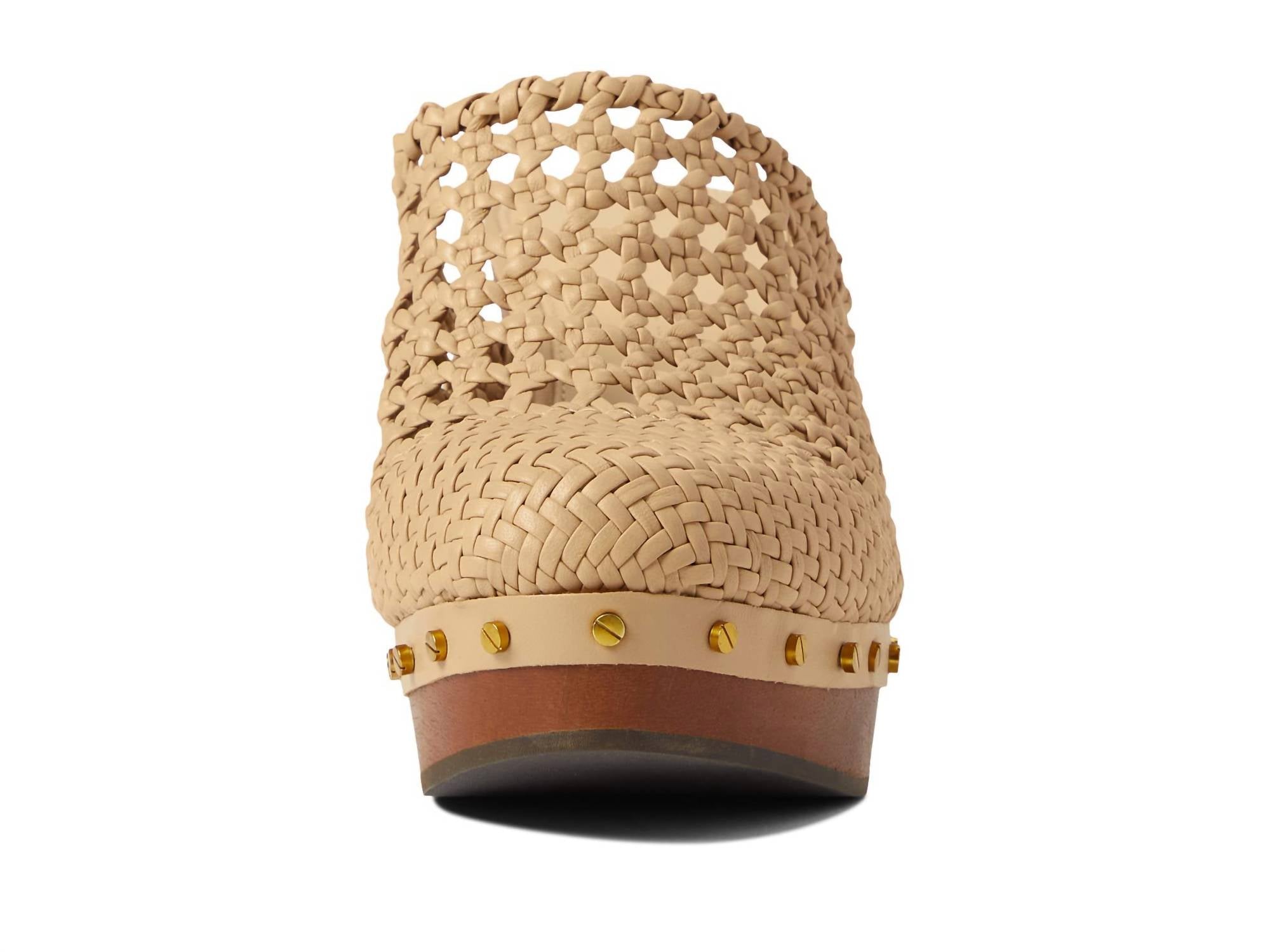 The perfect height for day to night. Step into chic style and comfort with the Women's Hardie Clog by Veronica Beard. These slide-on heels feature an almond toe design and a 3.5-inch block heel, perfect for a boho chic look. The uppers boast a woven design with latticed detailing and grommet accents around the platform, while being crafted from luxurious leather. Ideal for summer, these clogs are perfect for a Valentine's Day homecoming event.