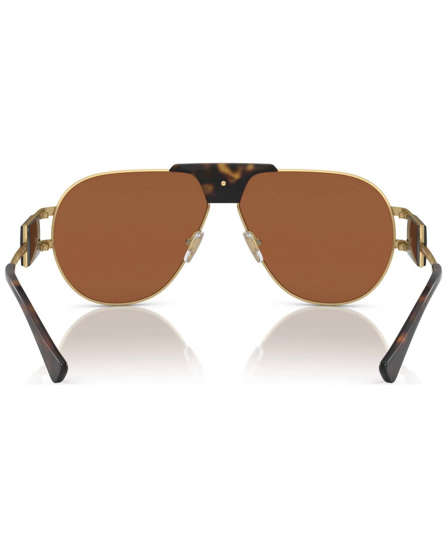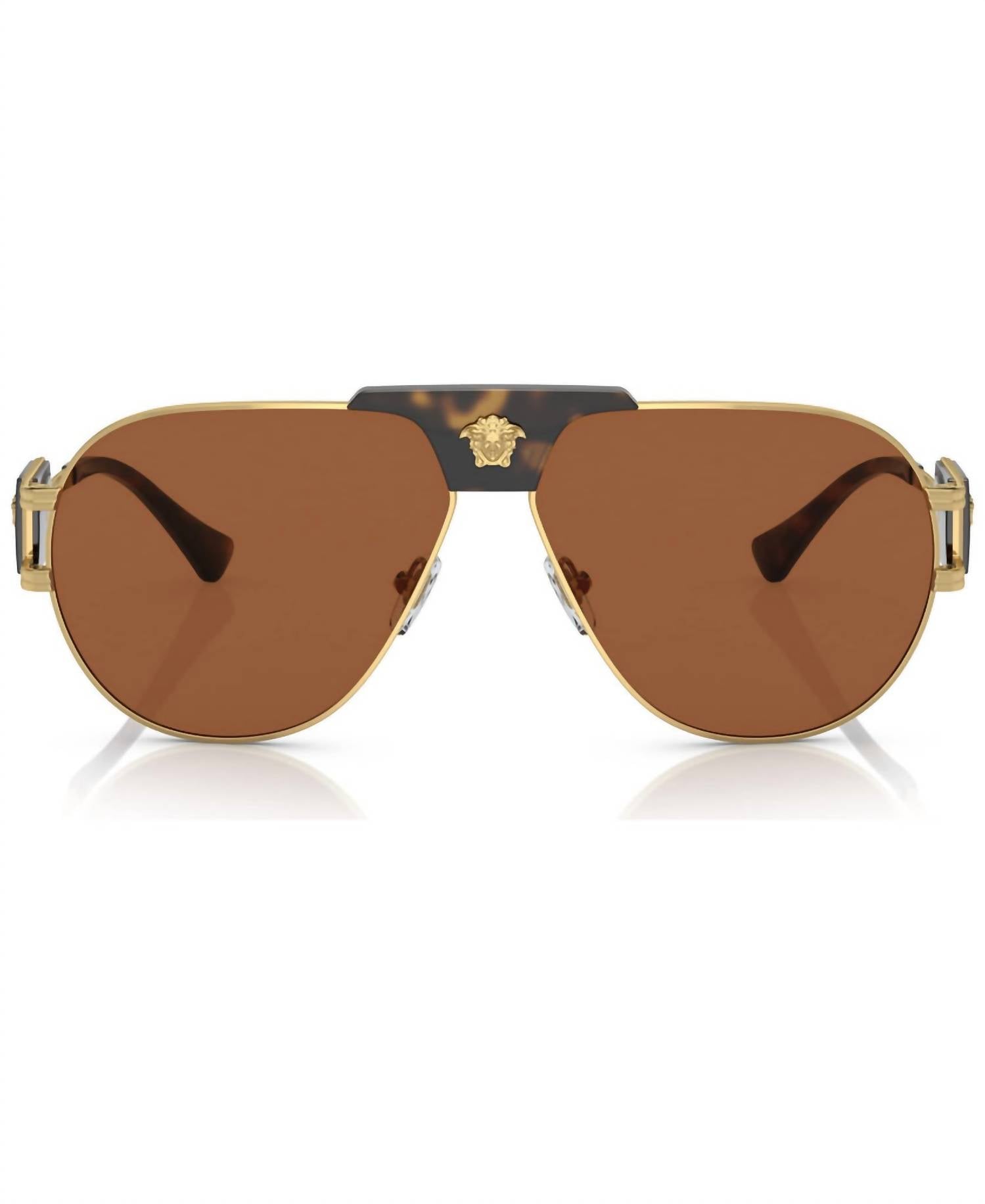 Discover the epitome of luxury eyewear with the MEN'S 0VE2252 SUNGLASSES by VERSACE. These pilot-shaped sunglasses boast a striking gold steel frame, elegantly paired with dark brown polyamide lenses. With a bridge size of 12, rod length of 145, lens length of 63.0, and lens height of 53.8, they offer a perfect fit and a standout style. Made in Italy, these sunglasses are not only a statement piece but also a testament to superior craftsmanship and design.