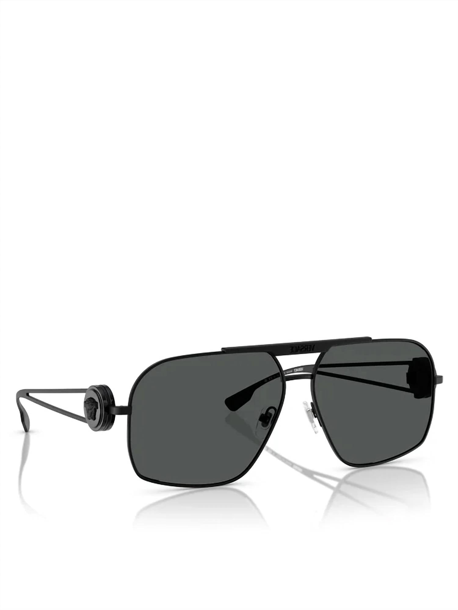 Elevate your style with the VERSACE MEN'S 0VE2269 SUNGLASSES, a striking aviator design crafted for sophistication. The frame is made of durable stainless steel in a sleek matte black finish, complemented by dark grey lenses. Featuring a lens composition of Polyamide Bio, the sunglasses boast an irregular shape with dimensions of 62mm in length, 50mm in height, and a bridge width of 13mm. Designed in Italy, these sunglasses offer a base curve of 2 and rod length of 130mm, ideal for a distinct yet timeless look.