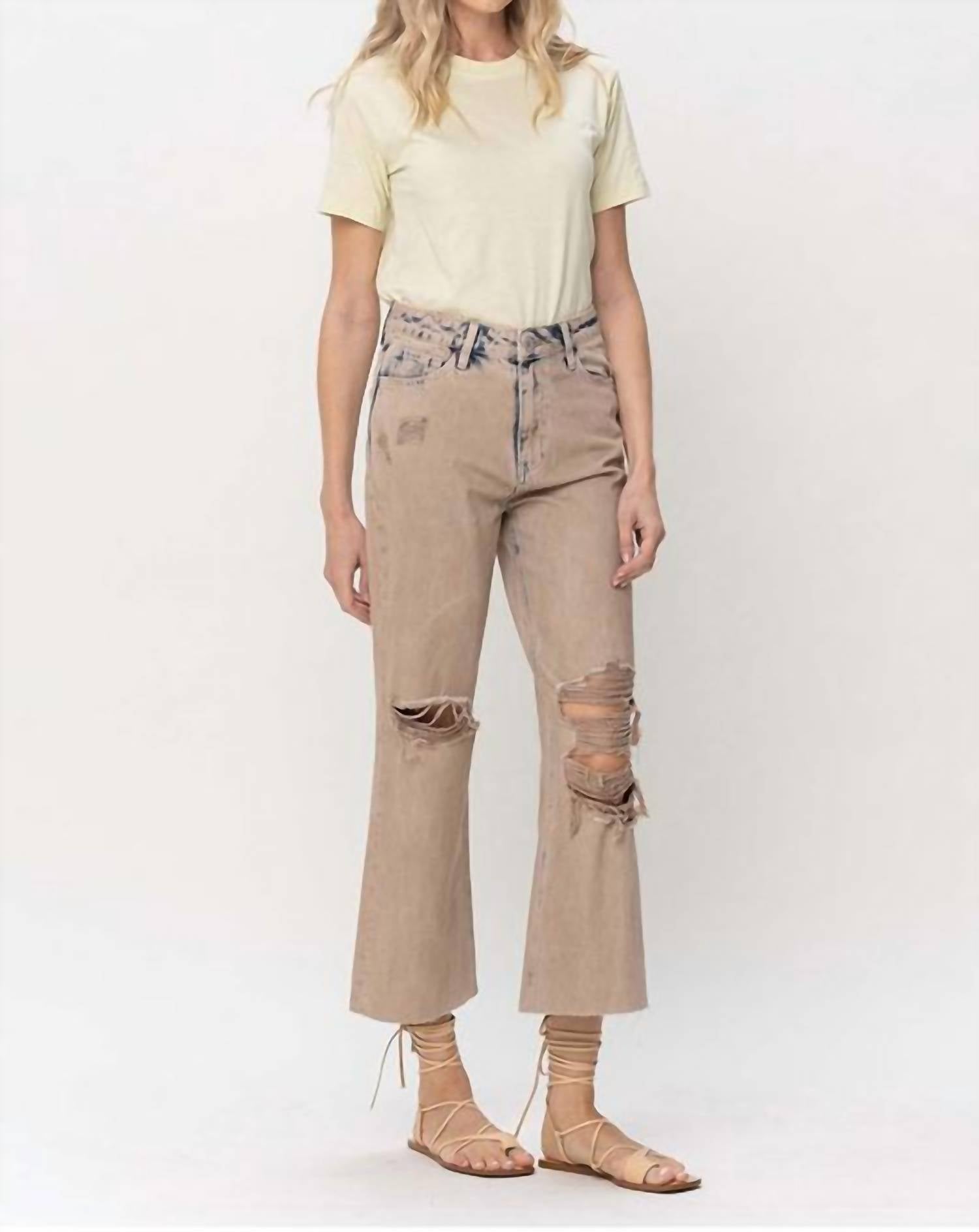 A flattering silhouette that's suprisingly versatile. Step back in time with the 90s Vintage Crop Flare Jeans from VERVET BY FLYING MONKEY, a stunning revival of retro style. These jeans are crafted from 100% cotton and feature a distinctive flared leg for an authentic vintage vibe. Made in Vietnam, they offer a flattering mid-rise with front zip closure, a 26" inseam, an 11.25" rise, and a 20" leg opening. Pockets add practicality, and maintenance is easy with machine wash and tumble dry care instructions.