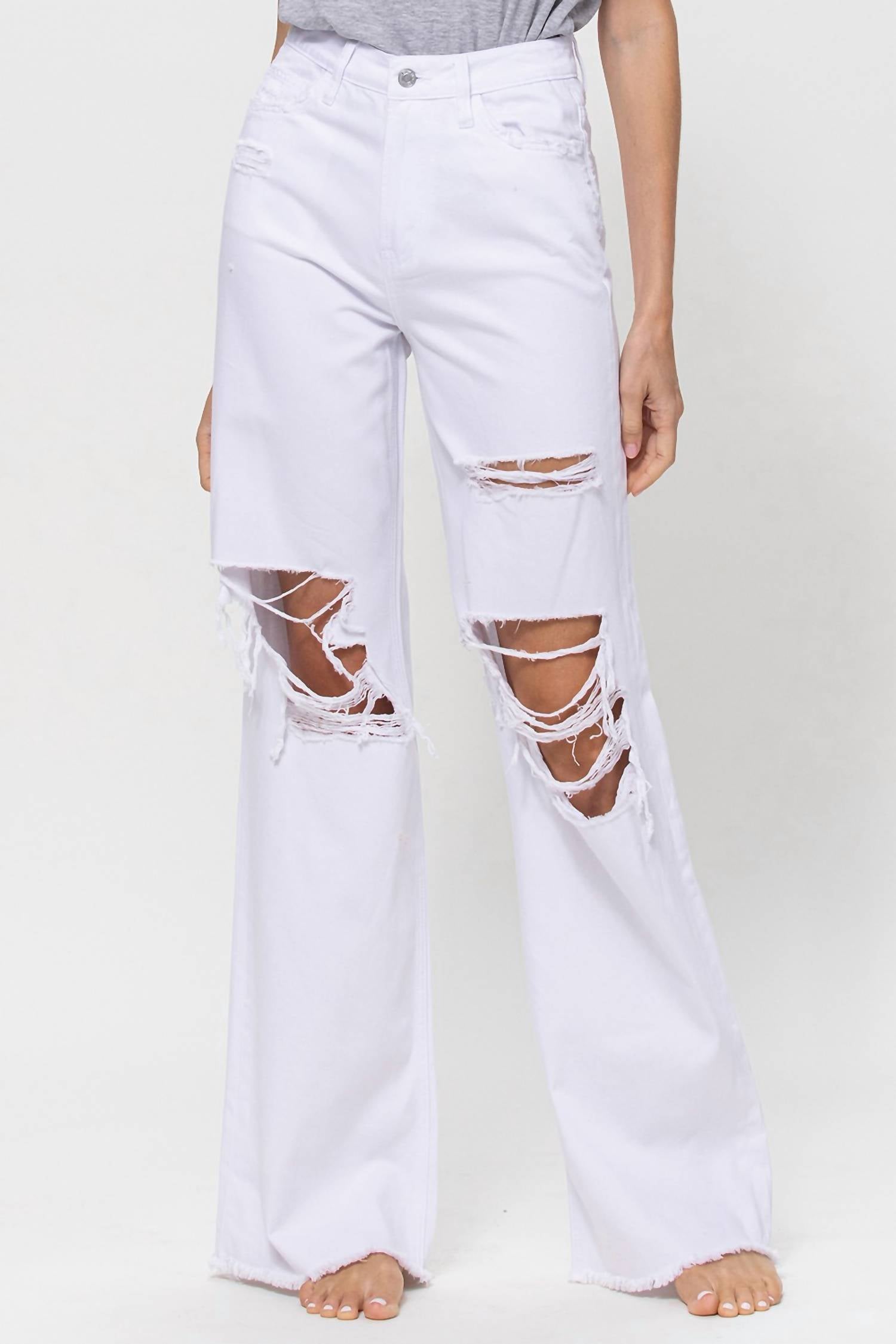 A flattering silhouette that's suprisingly versatile. Step into the past with the VERVET BY FLYING MONKEY 90's Vintage Loose Jeans, a perfect blend of retro style and modern flair. These high-rise, wide-leg jeans offer a solid pattern with a button closure, crafted from 100% non-stretch, non-sheer cotton fabric. With garment length at 42 inches, front rise of 11 1/2 inches, inseam of 32 inches, and a leg opening of 22 inches, these jeans provide a comfortable, relaxed fit. Machine wash and tumble dry. Model is 5'9" wearing size 26. Pockets included for convenience.